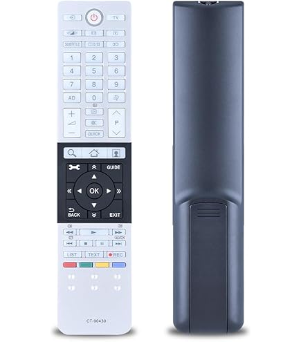 5UV2363DG 55UV3363DG 65QV2363DG 65QV3363DG 65UK4D63DB 65UV2363DG 65UV3363DG et plus. Modèles compatibles:30116758 32LK3C63DB 32W2263DG/2 43UV2363DG 50UV2363DG 55UV2363DG 65UV2363DG 43UK3C63DB 50UK3C63DB 50UK4D63DB 55UK3C63DB 65UK4D63DB 43UV2363DB 50UV2363DB 32LV3E63DAZ 32LV3E63DG Pas de réglage nécessaire Gvirtue CT-8567 R30116758 Télécommande compatible avec téléviseurs LED Toshiba Smart 4K UHD HDR OLED - Fonctionne avec les modes TV Toshiba suivants (liste non complète) : 3QV3363DG 32LK3C63DB 32LV2363DG 32LV2E63DG 32LV3E63DAZ 32LV3E63DG 32W2263DG/2., 32WV2363DA 32WV2363DG 32WV2E63DG 40LV2E63DAZ 40LV2E63DG 43LV2E63DG 43LV3E63DAZ 43QV2363DG 43QV3363DG 43UK3C63DB 3UV236., 3DB 43UV2363DG 43UV3363DG 43UV3463DAW 50QV2363DAW 50QV2363DG 50QV3363DG 50UK3C63DB 50UK4D63DB 50UV2363DB 50UV2363DG 50UV3363DG 555UV363DG QV236., 3DG 55QV3363DG. Pas besoin de configuration ou de programmation. Touches de raccourci : Prime Video, Netflix, YouTube, Rakuten TV Buttons! Il suffit de mettre 2 piles AAA pour l'utiliser., (Piles non incluses) Ne nécessite pas beaucoup d'espace et est confortable à tenir par vos mains., 2., Le design léger et ergonomique le rend très confortable. CT-8528 CT8528 Télécommande de Remplacement Compatible avec Toshiba Compatible avec les modèles de téléviseurs Toshiba (liste non complète) : 43LV2E63DG 43LV3E63DAZ 43QV2363DG 43QV3363DG 43UK3C63DB 43UV2363DB 43UV2363DG 43UV3363DG 43UV3463DAW 50QV2 363DAW 50QV2363DG 50QV3363DG 50UK3C63DB 50UK4D63DB 50UV2363DB 50UV2363DG 50UV3363DG 55QV2363DG 55QV3363DG 55UK3CC63 dB 5 dB. - Touches de raccourci : Prime Video, Netflix, YouTube, Rakuten TV Buttons - Contenu : 1 télécommande (piles non incluses). Gvirtue CT-8567 R30116758 Télécommande compatible avec Toshiba Smart 4K UHD HDR OLED LED TV 3QV3363DG 32LK3C63DB 32LV2363DG 32LV2E63DG 32LV3E63DAZ 32LV3E63DG 32W2263DG G/2 32 WV2363DA 32WV2363DG 32WV2E63DG 40LV2E63DAZ 40LV2E63DG et plus. Prise en main confortable. Les boutons sont en plastique souple, et la télécommande est fabriquée en matériau ABS de haute qualité. C'est le remplacement idéal... Telecommande Universelle Toshiba Tv Télécommande TV CT-8567 Compatible Avec Toshiba 32LK3C63DB 32W2263DG/2 43UK3C63DB 50UK3C63DB 50UK4D63DB 55UK3C63DB 65UK4D63DB Smart 4K UHD HDR LED Telecommande Toshiba mais la fonction est 100 % identique à l'original et couvre toutes les fonctions de la télécommande d'origine., 4., Aucune programmation n'est nécessaire, il suffit d'insérer les piles et il fonctionne bien avec votre appareil ou récepteur.