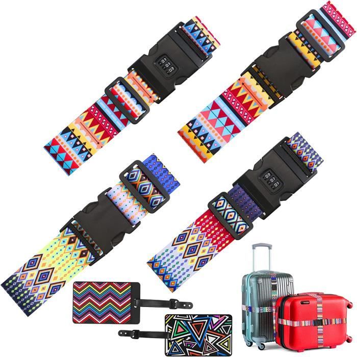 Lot 2 Sangles élastiques Voyage Sangles Identification Valise Sangles De Valise - Lot De 4 - 2 Couleurs - Réglables Et Résistantes - Avec Étiquettes Nom - Pour Voyage Sécurité Valise Aéroport Sangle Bagage Polyester Noir Orange Styles élégants Choisissez une sangle orange vif pour une meilleure visibilité sur les tapis roulants des aéroports – idéale pour identifier rapidement vos bagages et éviter les confusions – ou optez pour une version noire classique pour un look élégant et minimaliste qui s'harmonise avec la plupart des valises. CONFO® Sangle de bagage élastique, sangle de fixation de sécurité... À propos de cet article · Longueur de la ceinture : 1,2 à 2 m ; largeur de la ceinture : 5 cm ; sangle de bagage universelle pour valise de 50,8 à 81,3 cm Durable et résistante à l'usure Fabriquée en polyester à tissage serré, cette sangle à bagage est dotée d'un coussinet en cuir PU antidérapant et d'un cordon élastique. Les deux coloris offrent la même fiabilité et la même praticité élégante. Sangle de bagage de voyage serrure à mot de passe réglable ceinture d Elle maintient votre valise bien fermée et réduit le risque d'ouverture accidentelle pendant le voyage. Conception élastique et extensible La partie élastique assure un maintien sûr autour de votre valise, réduisant ainsi le risque de déplacement ou d'ouverture pendant la manutention ou le transport. Combinaison de couleurs facile à repérer Le design noir et orange vous permet d'identifier rapidement vos bagages sur les tapis à bagages, ce qui vous fait gagner du temps et réduit le risque de vous tromper de bagage. Polyvalent pour de multiples usages Peut être utilisé non seulement pour les valises, mais aussi pour sécuriser les sacs à dos, les boîtes de rangement ou le matériel pendant les voyages, le stockage ou les activités de plein air. Léger et idéal pour les voyages Chaque ensemble ne pèse que 60 g, ce qui le rend facile à transporter ou à ranger dans une poche latérale sans encombrement inutile. Longueur réglable pour une polyvalence optimale Conçue pour être flexible, la sangle s'ajuste facilement jusqu'à 157cm pour s'adapter à des valises de différentes tailles. Elle offre une excellente robustesse, une résistance à la pression et une durabilité accrue, idéale pour sécuriser vos bagages en toute confiance. Boucle à dégagement rapide Se fixe solidement grâce à une boucle à clip simple et facile à utiliser, pour plus de commodité et éviter tout détachement accidentel.