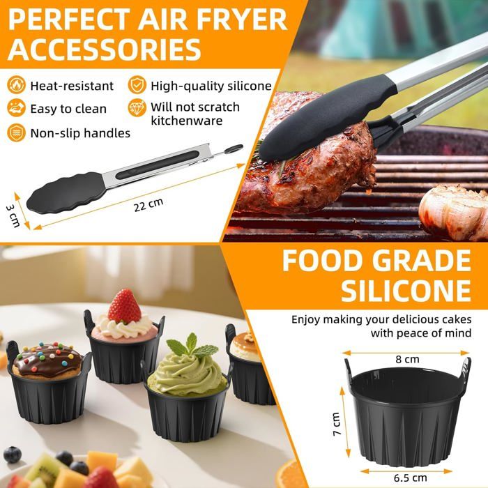 Moule Air Fryer Ninja Ninja Accessoires Air Fryer,9 Pièces Silicone Moule Airfryer Pour Ninja Af400Eu Af300Eu Af451Eu,Grilles Et Plat Réutilisables Pour - Electroménager Moule Silicone Friteuse Sans Huile Idéal pour les dîners de famille et les occasions spéciales. Le moule en silicone réutilisable Airfryer pour la friteuse peut être utilisé pour cuire, rôtir, frire ou conserver des aliments, moule en silicone friteuse... Les moule silicone air fryer ont des trous sur les deux côtés, qui peuvent assurer une meilleure circulation de l'air et une meilleure répartition de la chaleur Son intérieur surélevé permet une circulation d'air optimale, assurant une cuisson uniforme, évitant que les aliments ne collent et rendant les aliments plus croustillants. Un cadeau idéal pour votre famille, vos amis ou les passionnés de cuisine. Plat Pour Air Fryer Ninja 2 Moules Silicone Pour Air Fryer Ninja Convient non seulement à la friteuse à air, mais aussi au micro-ondes, au four et au congélateur. Description du produit Jukibole Moule Silicone Air Fryer Compatible avec Ninja Double Stack XL AF400EU AF300EU 7,6L-9,5L 【Compatible avec la plupart des friteuses à air double zone】Cet moule silicone air fryer accessoire est compatible avec la plupart des friteuses à air double zone d'une capacité de 7,6 L à 9,5 L, y compris les friteuses pour Ninja Dual Air Fryer AF300EU, AF400EU, AF451EU et autres friteuses à air double zone. Les gants, la brosse à friture et le tapis pour friteuse à air sont tous fabriqués en silicone alimentaire, vous permettant de savourer des repas sains en toute sérénité. La grille et le plat à toast sont en acier inoxydable 304 de qualité alimentaire, sûr, durable et résistant à la rouille. 【Le cadeau idéal pour la cuisin】Les accessoires pour ninja air fryer sont faciles à nettoyer, à la main ou au lave-vaisselle, ce qui vous fait gagner du temps après la cuisson. Il est également livré avec une pince anti-brûlure et un gant en silicone pour protéger vos mains des brûlures lors du retrait du moule. La taille de la forme en silicone pour la friteuse air fryer mesure 20,5 x 15 x 7 cm.