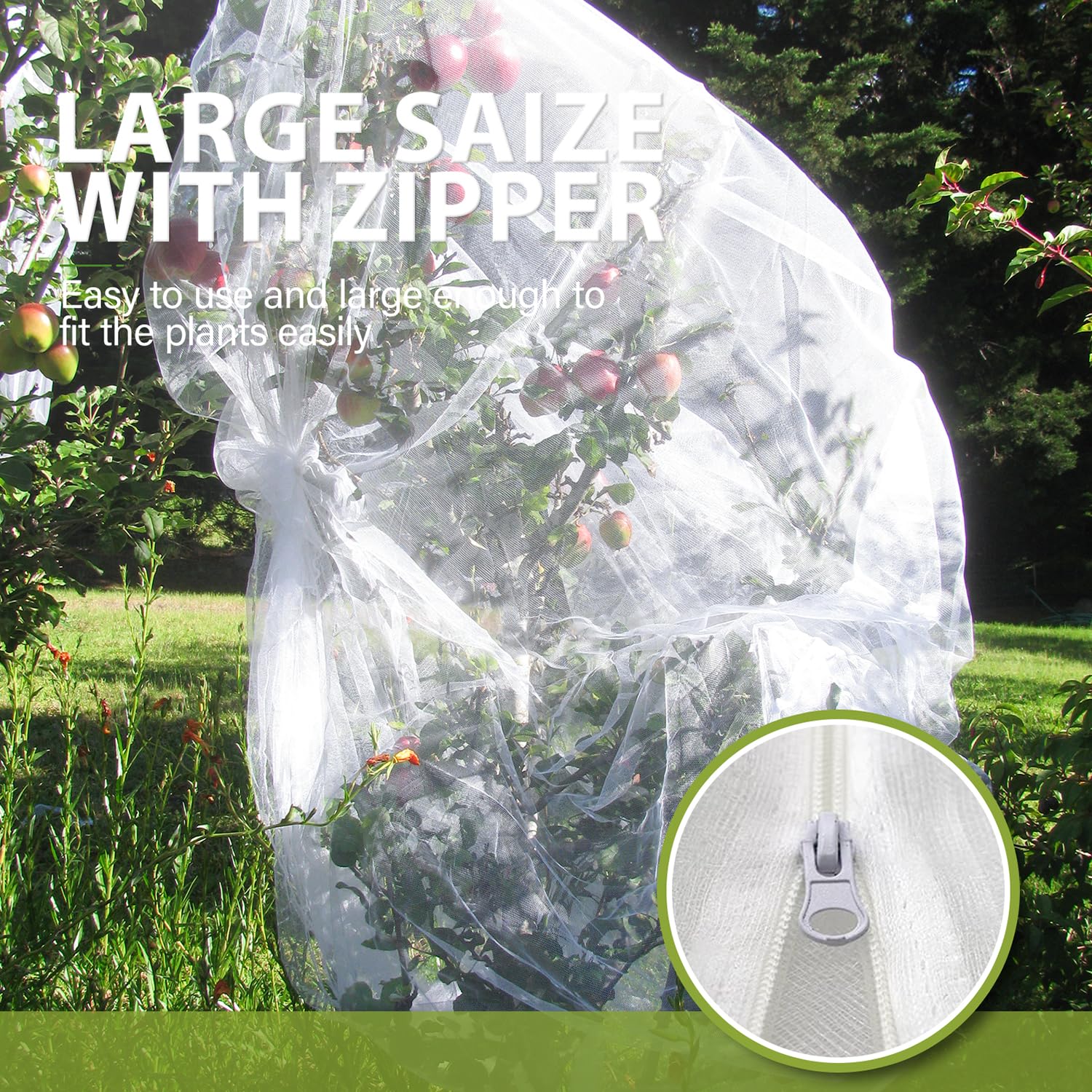 Caractéristiques : * Protection en maille ultra fine : ce filet est construit à partir d'un design super dense de 60 mailles, une protection efficace pour vos arbres potagers et fruitiers contre les oiseaux, les écureuils et les lapins, vous aidant à profiter d'une récolte abondante de délicieux fruits. Lot de 2 filets de protection pour jardin, avec fermeture éclair et cordon de serrage, design en maille fine pour protéger les plantes (1,8 x 1,8 m * Matériau résistant à l'usure : fabriqué à partir de matériau PE de haute qualité, le filet anti-oiseaux est léger mais incroyablement durable, avec un tissage serré qui empêche les déchirures des animaux tout en protégeant vos plantes sans causer de dommages à leurs branches ou fruits. Nombre de pièces : 2., Contenu de l'emballage : 2 boucliers anti-insectes. Plusieurs options de taille disponibles : choisissez parmi les tailles telles que 1 m, 2 x 1,4 m, 1,8 x 1,8 m, 2 x 2,4 m et 2,4 x 2,4 m pour s'adapter à diverses plantes, y compris les tomates et les arbustes à fleurs. Filet Contre écureuils Lapins Aphrolin Lot De 2 Sacs De Protection Pour Plantes, 1,8 X 1,9 M, Réutilisables Et épais En Maille Cryptée Avec Cordon De Serrage, Filet De Protection Pour Plantes D'arbres Fruitiers, Protection Contre Filet Protection Jardin * Fermeture éclair pratique et cordon de serrage : l'inclusion d'une fermeture éclair latérale et d'un cordon de serrage réglable en bas facilite la couverture et le retrait des plantes, tandis que le cordon de serrage aide à sécuriser le filet contre le vent et les petits animaux, améliorant sa facilité d'utilisation. Barrière efficace pour les animaux : avec sa construction en maille ultra-fine 60, ce filet offre une protection fiable pour vos arbres fruitiers contre les jardins communs comme les oiseaux et les écureuils, vous aidant à profiter d'une récolte riche. Matériau léger : fabriqué à partir de matériau PE, ce filet est à la fois solide et léger, avec des fibres étroitement tissées qui résistent aux déchirures tout en assurant la sécurité de vos plantes. * Options de taille polyvalentes : disponible en plusieurs tailles, y compris 1 x 1 m, 1,2 x 1,4 m, 1,8 x 1,8 m, 2 x 2,4 m, 2,4 x 2,4 m, ce filet en maille est idéal pour couvrir une des plantes telles que les myrtilles, les agrumes, les tomates et les arbustes à fleurs, ce qui en fait un choix polyvalent pour tout jardin. Filets de Protection pour légumes - Jardinière - 18x13 -100pcs[B Caractéristiques : * Nom du produit : protection contre les insectes. Plusieurs options de taille disponibles : choisissez parmi les tailles telles que 1 m, 2 x 1,4 m, 1,8 x 1,8 m, 2 x 2,4 m et 2,4 x 2,4 m pour s'adapter à diverses plantes, y compris les tomates et les arbustes à fleurs