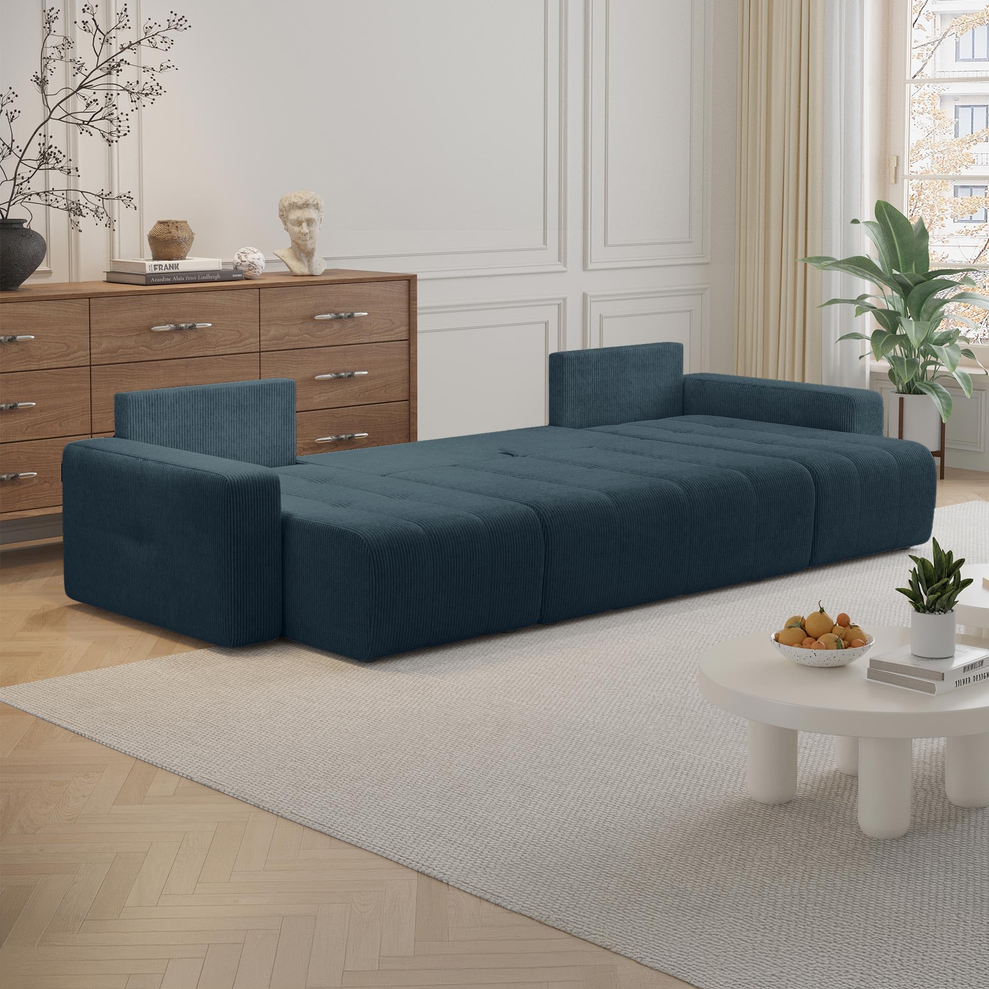 Grâce à ses matériaux de qualité et son rembourrage épais, notre canapé vous permettra de profiter de soirées agréables en famille ou entre amis, tout en garantissant un soutien confortable et durable. Sa couleur intemporelle, subtile et neutre, mettra en valeur votre espace de vie, en faisant de notre canapé la pièce maîtresse qui captera tous les regards. Explorez le canapé panoramique Alicia en velours côtelé beige, alliant design moderne et confort exceptionnel grâce à sa fonctionnalité convertible. Idéal pour ajouter une touche d'élégance à votre espace Canapés panoramiques Couleur beige Structure en bois de conifère épaisseur 32 mm panneau de particules épaisseur 16... Lire la suite. 849,00 Doté d'un grand coffre de rangement, il vous offrira un espace supplémentaire pour stocker plaids, coussins et autres accessoires du quotidien, vous permettant ainsi d'optimiser votre espace. Mobilier Deco - Mobilier Deco added a new photo Assise ferme, ressort ondulé type A. Largeur 145cm x Longueur 312cm x Profondeur 145cm x Hauteur 85cm Collection Alicia mini Notre canapé d'angle convertible et réversible avec coffre en velours côtelé beige apportera une touche d'élégance intemporelle à votre intérieur. Son design moderne aux lignes épurées et sa couleur Pensé pour un confort optimal, notre canapé offrira une assise spacieuse et un dossier, parfaits pour se détendre après une longue journée. Notre canapé panoramique convertible avec coffre en velours côtelé beige apportera une touche d'élégance et de modernité à votre salon. Avec son design unique et ses lignes épurées, il s'intégrera parfaitement dans les intérieurs contemporains comme classiques.