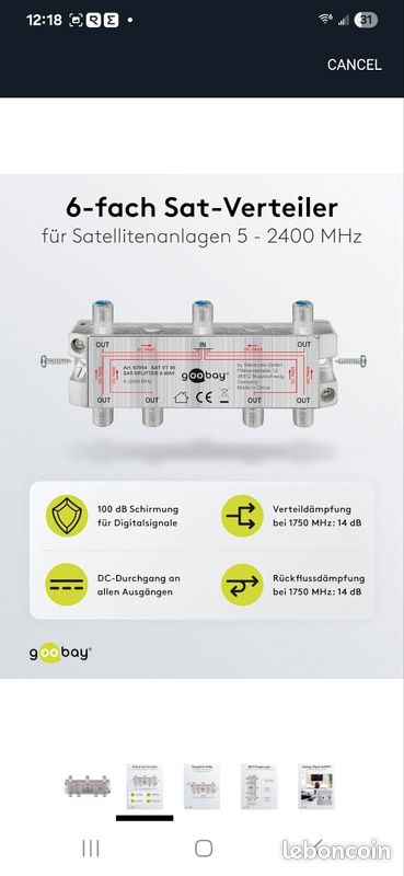 Atténuation d'adaptation à 1 750 MHz: 14 dB Pour dispositifs de repérage par satellite 5 MHz à 2 500 MHz., Raccords F Blindage 100 dB pour signaux numériques Splitter Satellite 4 Sorties F Répartiteur D'écran Quadruple HDMI Measy MV4341 4K 30 Hz 4 En 1 Sortie Répartiteur 4 Sorties Goobay 67003 SAT-Verteiler, 4-fach, 4 x out, Silber - für Satellitenanlagen 5 MH VaVaDo Shop (18637) Gewerblich Goobay Répartiteur SAT, 4x ; 1 pièce · 11.90 par pièce ; 2 pièces · 10.60 par pièce−11% ; 3 pièces · 10.10 par pièce−15% ; 4 pièces · 9.45 par pièce−21 F 2 Maths Lgx Répartiteur Satellite 2 Voies VHF UHF Mélangeur De