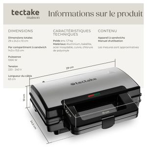 Panne non collante : le revêtement antiadhésif en téflon permet une meilleure mise en forme et garde votre espace propre et bien rangé sans passer beaucoup de temps à nettoyer. Appareil croque monsieur électrique professionnel CaterChef EMGA 688022 Spécifications: Puissance : 1500 W., Minuterie : 0 ~ 5 min., Température : : 50 ~ 300 °C. Température réglable. Les indicateurs sont conçus pour une observation claire de l'état de travail. & TIME - Deux boutons rotatifs équipés pour un contrôle précis de la température et du temps, avec température réglable de 50 à 300 ℃ (122 à 572 ℉) et temps réglable de 0 à 5 minutes. Détails bien pensés. Croque-monsieur, Revetement Antiadhésif, Verrouillage Sécurité, Poigné Permet de préparer 2 tranches de sandwichs rectangulaires à la fois. Revêtement du moule : téflon Matériau du moule : fonte d'aluminium Matériau du corps : acier inoxydable. Les plaques chauffantes en fonte d'aluminium avec revêtement antiadhésif en téflon assurent un chauffage parallèle pour une grande efficacité. Cette machine dispose en effet des plaques de cuisson spéciales qui épouseront la forme de vos pains. Découvrez notre sélection d'appareils à croque sur Matériel Horeca Plaque Antiadhésive Fonte Aluminium DOMO Appareil à Croque Monsieur XL DO9056C2 Croques | Hubo Appareil Croque-monsieur Sécurité et fiabilité : Contenu : 1 machine à sandwich professionnelle.,