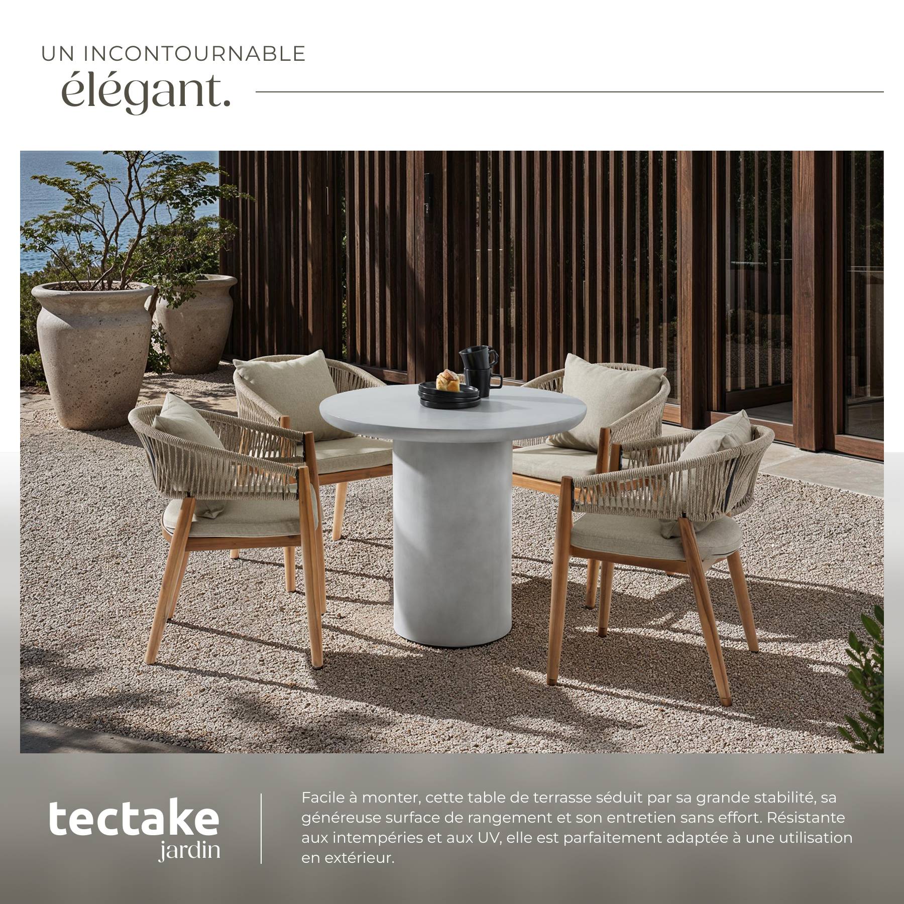 Table Ronde Blanche Extensible Salle A Manger TecTake® Table à Manger Ronde Extérieur & Intérieur En Oxyde De Table Terrasse Balcon TecTake Grâce à ses surfaces lisses, elle est en outre particulièrement facile d’entretien et se nettoie sans effort avec un chiffon humide. C’est le mobilier de jardin idéal pour ceux qui veulent une table solide, pratique et facile à déplacer, en toute sécurité. Matériau : 100 % oxyde de magnésium Cette table de jardin ronde se monte facilement, avec des instructions simples et claires. Pratique, robuste et esthétique, elle trouvera toujours sa place dans votre mobilier de jardin. En quelques minutes, vous pourrez profiter de votre nouvelle table a manger, idéale pour les repas en famille ou les apéros entre amis. MONTAGE RAPIDE ET SANS COMPLICATION – Pas besoin d’être un expert en bricolage ! Description du produit: Apportez avec la table de jardin ronde Talmi de tectake un véritable accent d'élégance dans votre espace intérieur ou extérieur ! Table ronde en Teck Suroh - Jarditeck by Médicis Elle séduit par son design moderne qui s'intègre idéalement dans tout espace extérieur grâce à sa forme harmonieuse et ajoute une note raffinée. Braséro jardin gaz chauffage extérieur oxyde magnésium housse... TABLE DE JARDIN RONDE EN OXYDE DE MAGNÉSIUM – Cette table de jardin est fabriquée en oxyde de magnésium, un matériau résistant aux intempéries et aux rayons UV. La table stable se distingue par sa fabrication en oxyde de magnésium, qui est non seulement résistante aux intempéries mais aussi parfaitement résistante aux rayures. FACILE D'ENTRETIEN POUR UNE UTILISATION QUOTIDIENNE – Vous allez adorer la simplicité d'entretien de cette table. Capacité de charge : 25 kg, Poids : env., 27,7 kg Plateau de table (⌀xH) : env., 86,5 x 4,5 cm, Base (⌀xH) : env., 39,5 x 71 cm STABILITÉ EXCEPTIONNELLE POUR VOTRE SALON DE JARDIN – Grâce à ses patins doux antidérapants, cette table ronde de jardin reste parfaitement stable, même sur des surfaces inégales. Test du chauffage extérieur au gaz Oxyde Magnésium 40000 BTU Détails techniques: Dimensions totales (⌀xH) : env., 86,5 x 75,5 cm Vous pouvez profiter de vos repas ou apéros en toute tranquillité sans craindre qu'elle bascule.