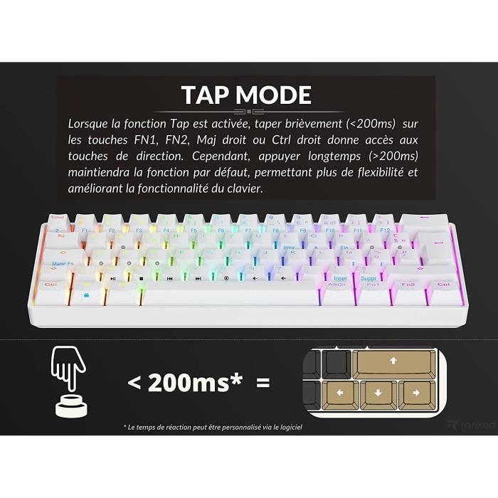 La fabrication des premiers microcommutateurs a débuté en 1953 dans la cave d'un restaurant de l'Illinois. Clavier compact, sans fil et remplaçable à chaud, sans pavé numérique : équipé d'un boîtier amorti, d'un éclairage blanc à intensité variable et de capuchons de touches en PBT résistant à l'usure Vingt ans plus tard, les premiers claviers étaient construits, ce qui fait de CHERRY le plus ancien fabricant de claviers d'ordinateur. Interrupteurs CHERRY MX2A SILENT RED de haute qualité : sensation de frappe souple et silencieuse avec caractéristique de commutation linéaire (sans clic) et plus de 50 millions d'activations volume, luminosité) et socle Hot-Swap pour démonter et remplacer les différents interrupteurs - sans soudure ni vis Cherry Kw 300w Mx Silent Red Compact Keyboard G84-4100, Disposition Française, Clavier Azerty, Clavier Filaire, Design Clavier AZERTY Rétroéclairé En 1983, la production des commutateurs MX a débuté et ils sont aujourd'hui utilisés des milliards de fois sur des millions de claviers dans le monde entier. Fonction multi-appareils flexible pour jusqu'à 4 appareils : connecte le clavier via l'un des 3 canaux Bluetooth ou par câble et passe de l'un à l'autre en toute simplicité en appuyant sur une touche Pratique : bouton rotatif pour commander différentes fonctions (p., ex. Le clavier dispose également d'un bouton rotatif pour contrôler différentes fonctions et d'un socle remplaçable à chaud pour échanger les différents commutateurs. CHERRY KW 9200 MINI, Clavier Compact Multi-Appareils Jusqu'à 4 Le clavier rechargeable peut en outre être connecté par Bluetooth ou de manière classique par câble. CHERRY KW 300W MX - Claviers ordinateur | à partir de 126,99 € | Comparer les prix avec ! ✓ Conseils d'achat ✓ Comparatifs ✓ Avis & Tests...