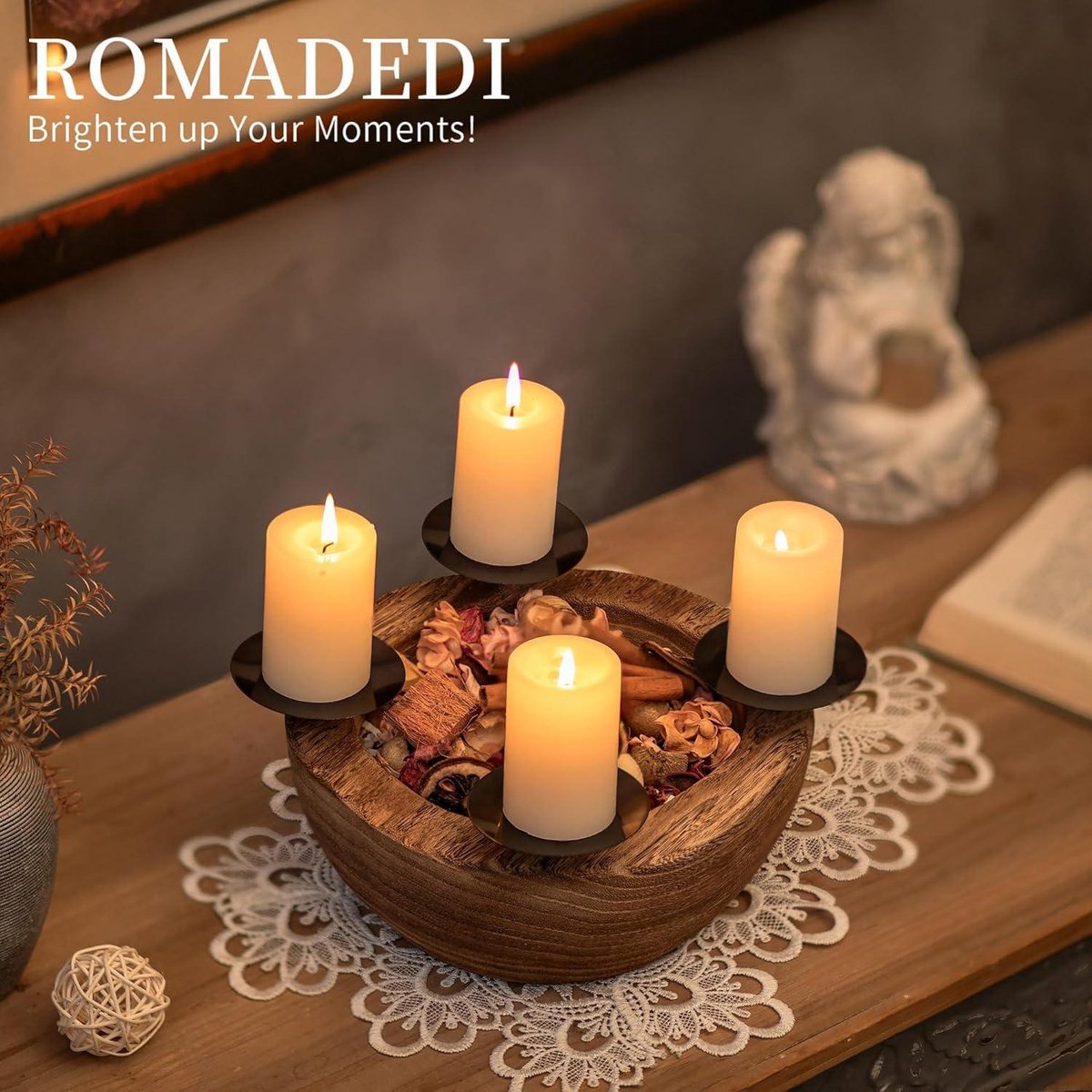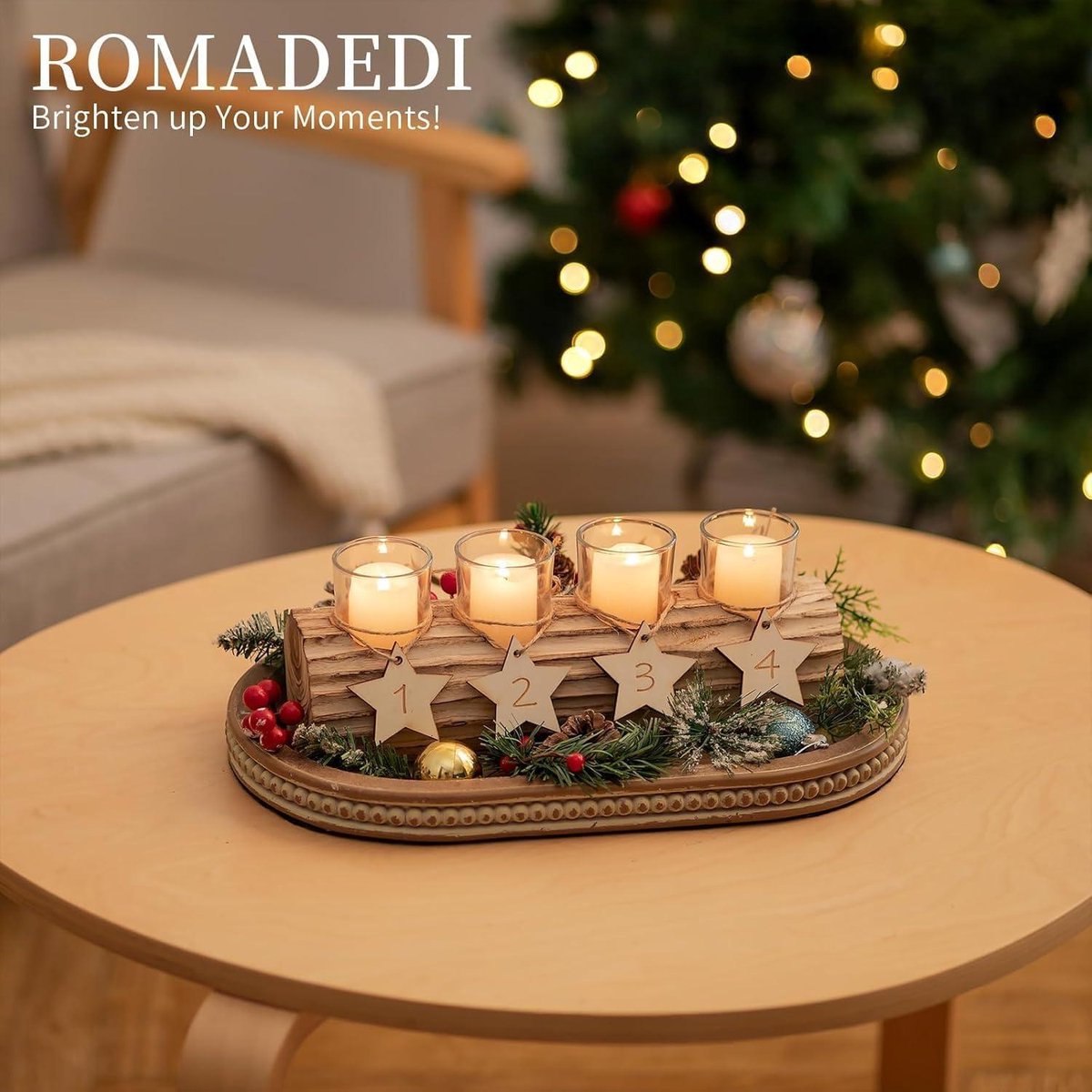 Utilisez-la comme point de mire sur le manteau de la cheminée, la table du salon ou une commode et créez une ambiance de fête dans votre maison Les meilleures offres pour Couronne de lavent Bois Rond Petit Couronne Avent Bol Decoratif avec 4 Bougeo... sont sur Comparez les prix et les spécificités des produits neufs et d 'occasion Pleins d 'articles en livraison gratuite Le bois de qualité supérieure et le support métallique robuste assurent la stabilité et la durabilité du produit., 3., le plateau en bois a une taille d'environ 25 cm de diamètre et d'environ 10 cm de hauteur et peut accueillir quatre bougies en bloc. Remarques : Le produit comprend un bol en bois et 4 bougeoirs en fer, les autres décorations ne sont pas incluses Coupe décorative polyvalente pour la période de l'Avent : la coupe en bois n'est pas seulement une belle décoration de table, elle peut aussi être utilisée comme pièce décorative dans la maison. Le bois de qualité supérieure et le support métallique robuste assurent la stabilité et la durabilité. Elle peut accueillir quatre bougies en bloc et crée une atmosphère chaleureuse et conviviale COURONNE DE L'AVENT TRÉSORS DES BOIS 24CM Il crée ainsi une atmosphère chaleureuse et conviviale., 4., outre sa fonction de bougies de couronne de l'Avent, le plateau décoratif peut également être utilisé de diverses manières dans la maison. Couronne D'avent De Noël Avec 4 Bougies Allumées Couronne Davent Decoree Partir Sapins Branches Feuilles Persistantes Bougiesallumees 72482 7870 Couronne De L'avent Avec 4 Bougies Couronne De L'Avent Synthétique Décoration Noël Houx Et Sapin D30cm HOUX, Couron Couronne Avent En Bois Porte-bougies de l'Avent naturel au charme rustique : la coupe de l'Avent est en bois de paulownia avec une surface flammée. Que ce soit sur le manteau de la cheminée, sur la table du salon ou comme accroche-regard sur une commode, cette couronne de l'Avent attirera certainement tous les regards., 5., créez votre propre deko weihnachten en ajoutant des décorations de Noël supplémentaires comme des bougies, des boules ou d'autres accessoires., 6., laissez libre cours à votre créativité et créez votre propre atmosphère de Noël. Achetez maintenant la décoration de table de Noël Hanobe et transformez votre maison en un paradis festif. SPÉCIFICATIONS : Forme : Rond Matériau : Bois de paulownia Diamètre : 25cm Couleur : Marron naturel Le paquet contient : 1 x bol de l'Avent rond en bois Décoration de l'Avent et couronne de l'Avent en un seul objet : la couronne de Noël Hanobe est une décoration moderne et élégante pour la période de Noël.