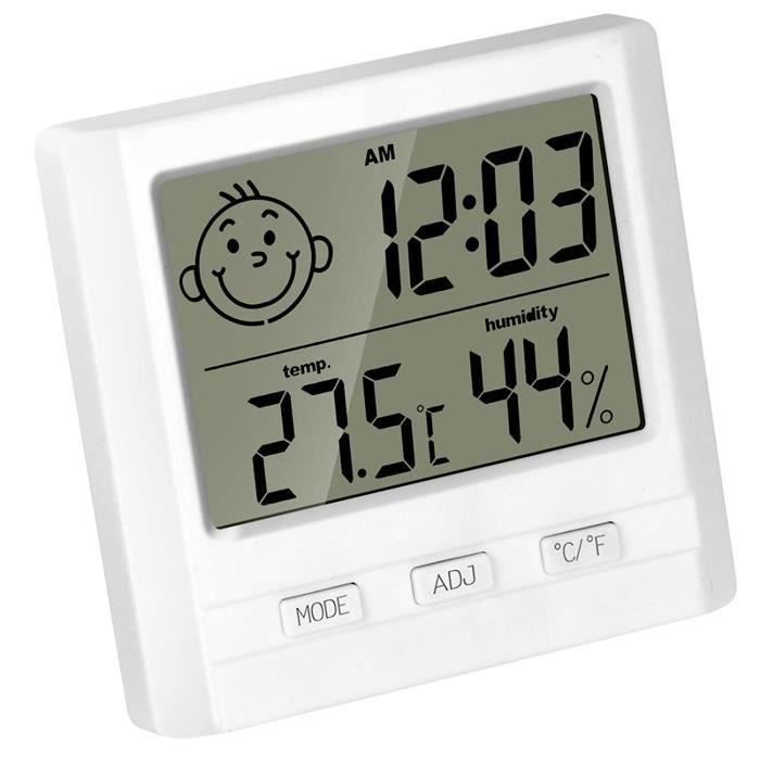 Remarque : Les mesures étant prises à la main, les tailles indiquées peuvent varier de 1 à 2 cm. Dimensions : Température : 0 à 49 °C., Humidité : 0 à 99 %. Thermomètre hygromètre chambre bébé numérique LCD • Instant Santé Grand écran LCD et rétroéclairage] Taille 3.6 * 3.4 * 0,94inch, thermomètre hygrométrique amélioré avec écran LCD de 3,7 pouces, plus facile à lire à partir de n'importe quel angle et à distance. Enfaitez l'icône Touch de rétroéclairage blanc, ce qui facilite la lecture et allumer l'écran dans des conditions sombres (15 secondes automatiques).[Enregistrements max et min... Pour les propriétaires qui apprécient le confort et les employés de bureau cherchent à améliorer la productivité en régulant l'humidité du lieu de travail. Station Meteo Lot De 6 Thermomètres Hygromètres Digital - Mini LCD Pour Maison, Chambre Bébé Thermomètre Hygromètre Digital pour le placement dans le salon pour maintenir l'humidité, dans les bureaux pour une meilleure atmosphère de travail, ou dans une chambre d'enfant pour assurer un environnement de croissance. Adoptez notre hygromètre numérique à énergie solaire, appareil qui garantit l'efficacité énergétique pendant l'humidité intérieure. Thermomètre Terrarium Thermomètre Numérique D'intérieur Avec Hygromètre Précis Pour La Température Ambiante - Enregistrement Max Min - Écran LCD - Écran LCD - Pour La Maison, Le Bureau, La Chambre D'enfant, La Contenu du paquet : 1 thermomètre hygromètre. Thermomètre hygromètre numérique à écran LCD pour la maison, la chambre de bébé Caractéristiques : Adoptez notre hygromètre numérique à énergie solaire, appareil qui garantit l'efficacité énergétique pendant l'humidité intérieure. Cet hygromètre à énergie solaire s'intègre parfaitement dans n'importe quel espace, offrant des mises à jour avec sa technologie pour une maison ou un bureau plus sain.