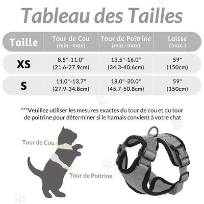 Gilet Chat Filet Respirant Taille S Harnais Et Laisse Pour Chat Avec Laisse Anti-Évasion Réglable, Sans Harnais Laisse Réfléchissante Taille S L'ensemble de harnais pour chat avec laisse comprend un harnais pour chat, une laisse en nylon de 150 cm de long et une laisse télescopique automatique (5 m). Harnais respirant pour chat - Gris réfléchissant - Réglable - Anti... Contrôle anti-traction et répartition uniforme de la pression : le design du gilet de harnais pour chat répartit uniformément la pression de la laisse pour chat sur la poitrine et les épaules pour éviter la fatigue du cou et l'étouffement Facile à utiliser et à nettoyer : l'ensemble de harnais pour chat avec laisse est équipé de deux boucles latérales et de sangles réglables qui permettent un enfilage et un retrait faciles. Parfait pour toutes les aventures en plein air Harnais Réglable Anti-Éclatement Pour Chat Avec Laisse Harnais Confortable Securise Pour Chats Et Chats 91811938 Avec un poids de seulement 80 g, il est léger et confortable pour les activités quotidiennes telles que la marche, le jogging et l'entraînement. Ajustement et confort : notre harnais pour chat avec laisse anti-éclatement est disponible dans les tailles S (tour de poitrine : 30-34 cm, tour de cou : 25-28 cm) et M (tour de poitrine : 35-40 cm, tour de cou : 29-33 cm). Cela augmente la sécurité lors des promenades nocturnes. La laisse pour chat avec harnais offre une sécurité et un contrôle supplémentaires Les deux boucles latérales et les sangles réglables empêchent le glissement et assurent un ajustement sûr et confortable, de sorte que votre chat est toujours protégé. Utilisation polyvalente pour les petits animaux de compagnie : notre harnais pour chat convient non seulement aux chats, mais aussi aux autres petits animaux de compagnie tels que les chiens, les lapins, les furets et les hamsters. Le matériau en maille de qualité supérieure est facile à nettoyer, lavable en machine et passe au sèche-linge. Veuillez mesurer la taille de la poitrine de votre chat près de son pelage et ajouter 2 à 3 cm à cette mesure pour se sentir à l'aise.