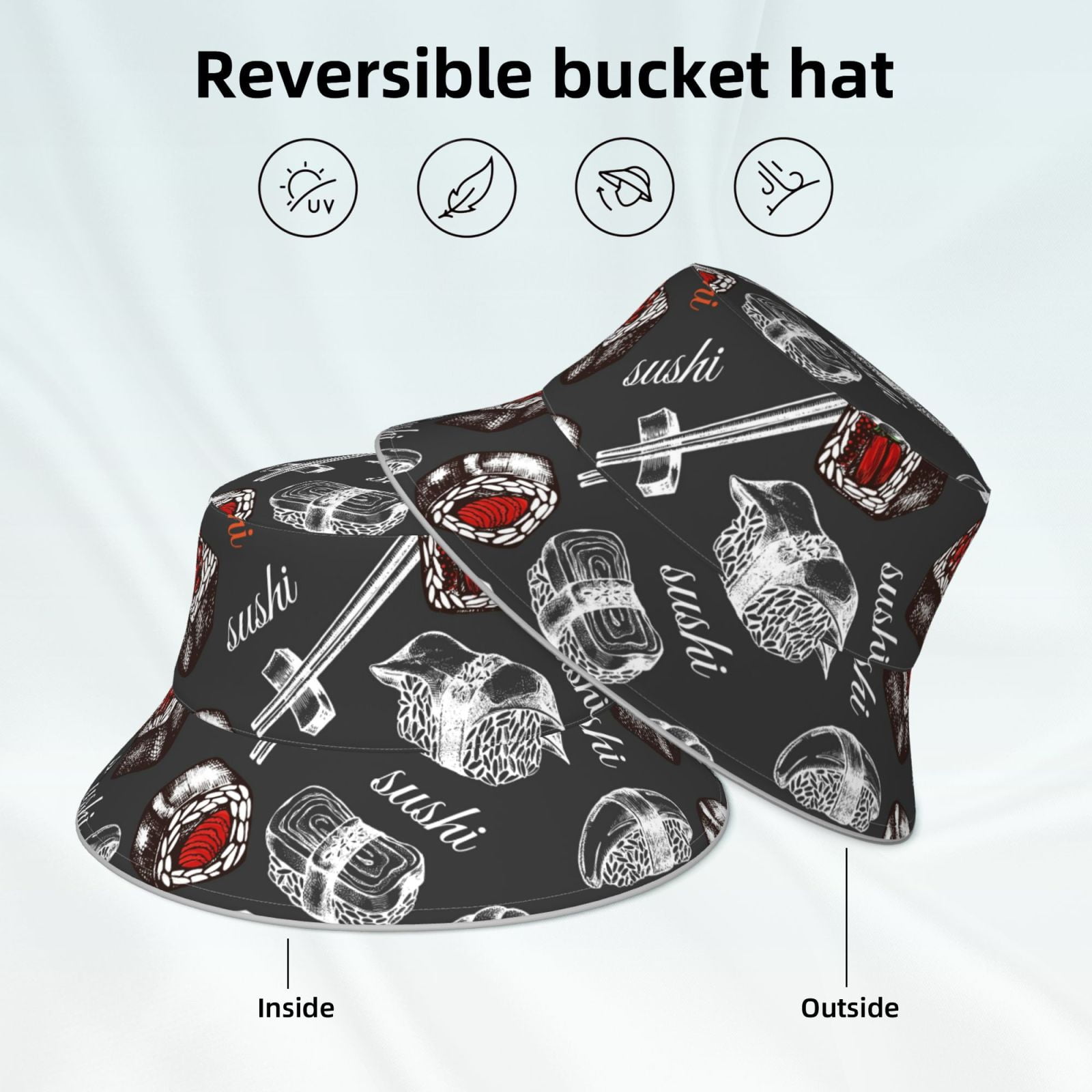 Prêt pour le voyage : le chapeau d'été japonais à motif sushi noir est pliable et portable, ce qui le rend facile à emporter avec vous dans chaque aventure Protection solaire : en été, porter un chapeau cloche est non seulement tendance et beau, mais il bloque également le soleil et protège votre peau du visage. Bob Chapeau Homme Chapeau Bob Japonais Pour Homme Et Femme - Chapeau De Soleil Pour L'été Chapeau Bob Noir Unisexe Performance : léger, respirant, pliable. Design polyvalent : ce bob est parfait pour les hommes et les femmes, design imprimé unique pour correspondre à toutes les tenues. Large gamme d'applications : ce chapeau cloche est idéal pour les voyages, la plage, les vacances, la randonnée, le camping, la pêche et d'autres activités de plein air. Personnage De Dessin Animé Mignon Riz Sushi Japonais Pirate Viking Avec... Sushi japonais noir imprimé voyage été femmes bob chapeau pliable Que vous soyez à la plage, en randonnée dans les montagnes ou que vous profitiez simplement d'une journée en ville, ce chapeau cloche est votre compagnon parfait. Léger et compact : facilement pliable et pliable, ce qui en fait le compagnon de voyage parfait pour tous vos voyages. Restez au frais et élégant avec notre chapeau cloche pare-soleil.