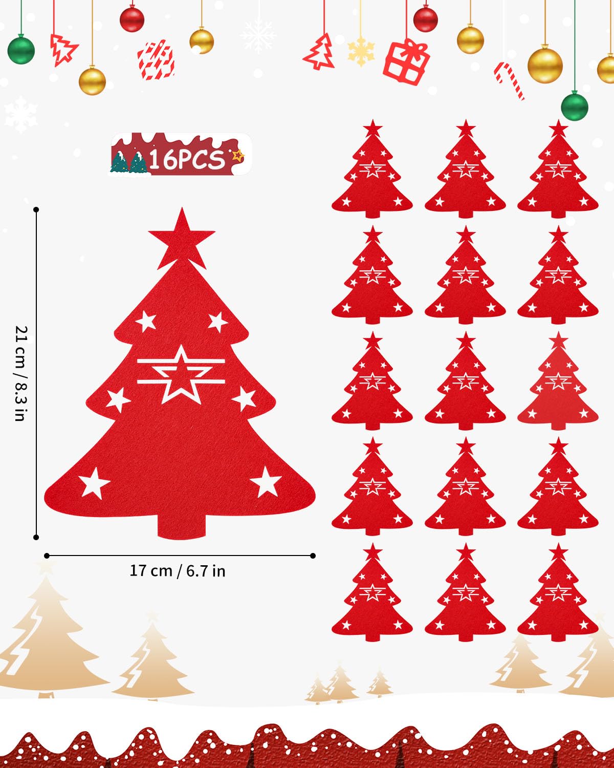 Pochette Couvert Noel Décoration Noël Table Porte Couteau De Table Lot De 16 Porte-couverts De Noël En Feutre Rouge - Forme Sapin, 20,7x16,9cm - Décoration De Table Porte Couverts Noel Vaisselle Noel Décoration Table Noel La touche finale de la décoration de table de Noël, laissez votre partenaire et vos familles s'intéresser davantage à la nourriture sur la table. Fonction :🍽️ 🎄 Est assez grand pour contenir la plupart des couverts de taille standard. chacun avec suffisamment d'espace pour une fourchette, une cuillère et un couteau, ce qui constitue un excellent ajout à la table de fête. 🎄 Le sac à couteaux et fourchettes de Noël est fabriqué dans un tissu non tissé de haute qualité, léger et durable, doux au toucher... Table traditionnelle : portes-couverts en feutrine rouge avec motifs de sapin ou de houx. S’accordent avec nappes crème ou dorées. Table naturelle : modèles en bois clair ou liège, complétés d’un brin de sapin ou de romarin noué avec de la ficelle Placez les couverts dessus pour garder la vaisselle bien rangée et ajouter de l'éclat à n'importe quelle décoration de table, le choix idéal pour la vaisselle de Noël. Choix classiques pour la décoration de Noël. Ensemble de 12 Porte couverts Noel table de Fêtes tissu - France Cadeau de Noël idéal pour les amis, la famille et les collègues. COYUN 16 Pièces Porte-Couverts de Noël, Porte Couverts en Feutre de Noël, Sac à Couverts de Noël, Décor de Table de Noël, Portes Couverts Noel pour Décoration de Table de Noël (Rouge) C'est la taille parfaite pour la plupart des couverts de taille standard, suffisamment pour exposer vos couverts tels que des fourchettes, des couteaux et des cuillères lors de votre dîner de Noël, ce qui en fait une décoration de table de Noël idéale. Des décorations de table exquises ne cesseront jamais de sourire à vos invités et peuvent créer une forte atmosphère de Noël pour vous, votre famille et vos amis. C'est un élément très important de la décoration de table lors d'une fête ou d'une fête. IDÉAL POUR LES CADEAUX DE NOËL: Ce sac à couverts est le choix parfait pour la vaisselle, les couverts et les étagères à couverts de Noël. La décoration délicate et le rituel suffisent à vous mettre en appétit pour un joyeux dîner de Noël en vous et en famille. TAILLE UNIVERSELLE: L'ensemble contient 16 Porte-couverts de Noël mesurant chacun environ 16,9 cm x 20,3 cm.