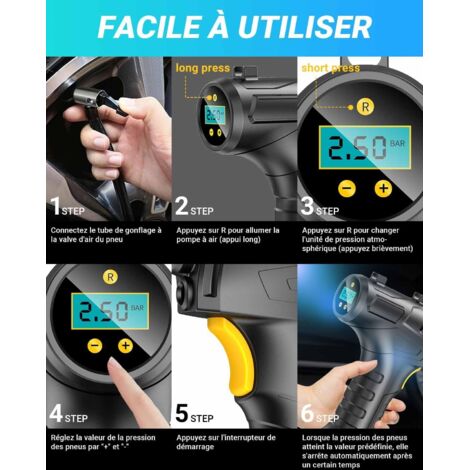 Avec des touches de commande simples et la possibilité de prérégler la pression des pneus, il assure un contrôle précis et une utilisation intuitive HYCHIKA ini Copresseur à Air Portatif, 12V 6000Ah La lumière ultra-lumineuse peut vous aider à gonfler et à changer les pneus plus facilement la nuit. Les modes stroboscopique et SOS peuvent également vous aider en cas durgence De plus, il convient parfaitement pour gonfler les ballons de sports comme le football, le basketball ou le volley-ball. 【Utilisation Simple et Polyvalence】Ce compresseur d'air portable se caractérise par sa facilité d'utilisation, avec une commande à un bouton pour le gonflage et un arrêt automatique une fois la pression souhaitée atteinte. Grâce à sa large compatibilité, vous gagnez du temps et de l'argent, n'ayant pas besoin d'un appareil séparé pour différentes applications. L'affichage LED clair vous informe en temps réel de la pression actuelle, vous gardant ainsi toujours en contrôle total. 【Accessoires et Emballage Complets】La livraison comprend un compresseur d'air sans fil, un tuyau d'air, quatre adaptateurs aiguilles, un adaptateur secteur, un câble de charge et un sac de rangement pratique pour un transport et une organisation faciles Compresseur d'air portable professionnel pour une polyvalence maximale et une manipulation facile Découvrez le compagnon ultime pour tous vos besoins de pression d'air ! SJLERST Compresseur à Air Portatif 4000mAh Gonfleur Pneus Voiture Sans Fil 150psi Mini Pompe Avec Lumiere Led Affichage Numerique Et Port C Usb Electrique Compresseur Pour Voiture Moto Velo Balle 88618790 Ainsi, une pression de pneu optimale est toujours garantie, ce qui améliore les performances du véhicule et augmente la sécurité. DC 12V ou USB rechargeable]Ce modèle gonfleur pneus voiture mesure 150 * 79 * 45mm et ne pèse que 539 grammes. · [Rapide et facile à utiliser]Notre gonfleur... Construction robuste et design portable Fabriqué à partir de matériaux durables, le compresseur d'air est conçu pour un usage régulier. Il offre une durée de fonctionnement maximale de 20 minutes pour une utilisation fiable Utilisation simple avec automatisation intelligente Avec la commande pratique à un bouton, le compresseur d'air démarre sans effort et s'arrête automatiquement une fois la pression souhaitée atteinte. Oubliez les réglages compliqués – avec ce compresseur d'air, obtenez des résultats professionnels sur simple pression d'un bouton ! 【Autonomie et Performance Durables】Avec une batterie rechargeable et une longue autonomie, l'appareil se recharge via USB-C ; une charge complète suffit pour quatre pneus de voiture, 50 pneus de vélo ou 100 ballons. 【Fonctions Supplémentaires et Sécurité】Le compresseur d'air dispose d'une fonction de recharge pour téléphones portables, tablettes et autres appareils, et peut être utilisé comme source d'alimentation de secours. Son format compact et son poids léger en font le compagnon de voyage parfait – rangez-le facilement dans votre coffre ou votre garage. Parfait pour une utilisation à la maison, en déplacement ou en extérieur – cet appareil garantit efficacité et confort en toute situation.