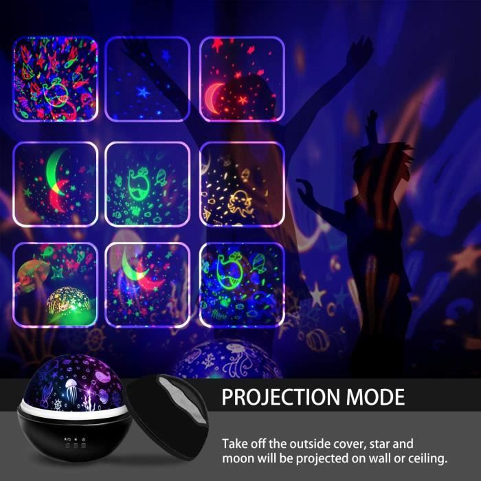 Design ergonomique : Mécanisme de contrôle simplifié intégrant projection lumineuse/sonore et tactile à distance. · Projection marémotrice Interface utilisateur fluide spécialement adaptée et personnes âgées pour une expérience sans difficulté . Lampe Avec Enceinte Bluetooth Sollee Lampe Lune Enfant, Veilleuse LED Lampe Lune Chambre Projecteur étoiles Lumière Douce Un ajout polyvalent à toute maison, elle s'intègre parfaitement dans les chambres, les salons ou les dortoirs, tout en rehaussant des espaces tels que les bureaux, les étagères ou les tables. Recharge Pratique: Batterie intégrée permettant une utilisation prolongée, cette veilleuse légère combine liberté sans fil et élégance fonctionnelle pour s'adapter à tout besoin. Expérience Audiovisuelle Immersive : une immersion sensorielle unique en associant un éclairage favorable au sommeil et une machine à bruit blanc sans fil. Le Projecteur propose trois modes distincts pour un éclairage ambiant, complétés par des capacités de variation d'intensité et de réglage. Contrôlé à distance... Univers Animal ciel étoilé projecteur lampe projecteur de lumière pour enfants jouets 360 degrés rotatif veilleuses cadeau d'anniversaire de noël | Leroy Merlin Système intuitif : Fonctionnement simplifié avec contrôle tactile à distance de la lumière, du son et de la projection. Émotion spatiale : Transformez l'ambiance de votre pièce avec projections marines et lumières dégradées, choisissant parmi 16 options d'éclairage dynamique envoûtant. Équipée d'un haut-parleur sans fil et d'une télécommande, elle convient à une utilisation intérieure à domicile, dans les hôtels, en camping ou lors d'événements festifs comme les fêtes, les anniversaires et Noël.
