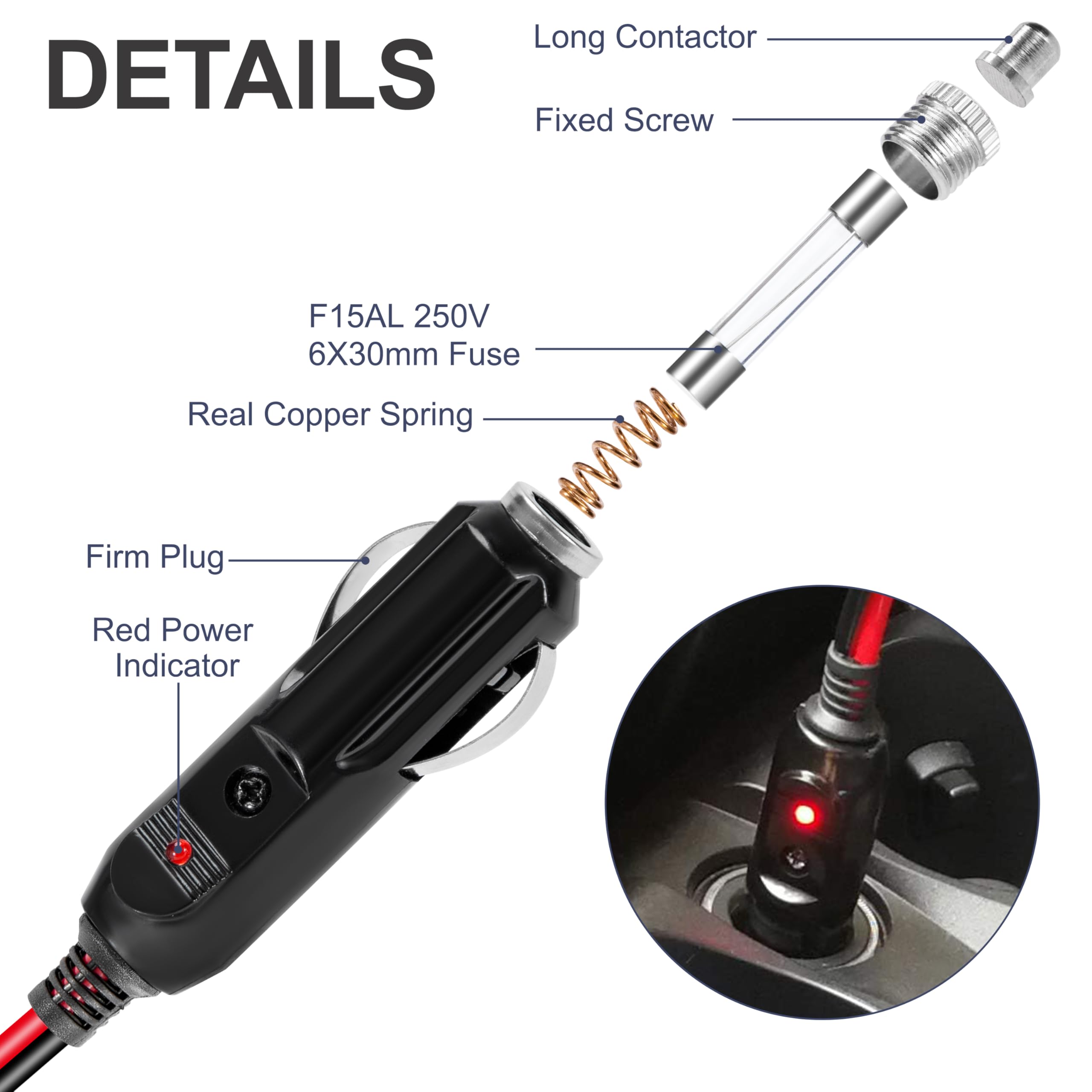 2X 12V 24V 15A Prise Allume-Cigare Robuste Mâle Rallonge Câble D'Al1794 6033526671212 Câble Extension Avec Interrupteur Accessoire électrique Véhicule Rallonge Allume-cigare Thlevel 1m - Fusible 15A - Interrupteur Et Voyant - 12V/24V Extension Prise Allume-cigare Voiture Rallonge Allume Cigare Extérieur Performances fiables: allume-cigare à câble étendu: tension de sortie 12-24V, câble lourd 16x1,0 mm² fil, longueur: 2m / 3m, poids: 188/246g, apport de remplacement sûr 2x15a ajoute une couche de fiabilité et de sécurité. Chargeur de voiture Câble d'extension avec interrupteur: Longueur du câble d'extension 1 mètre, coupe transversale nominale du noyau: 16AWG (fil 2x1,0 mm²). Assurance de sécurité: Les câbles d'extension sont équipés de fusibles 15A interchangeables et de lumières de contrôle intégrées rouges, empêchant efficacement les déversements et les courts-circuits. Cette rallonge de 3 mètres avec prise universelle pour adaptateur allume cigare vous permettra de brancher votre TV, votre smartphone dans votre véhicule. Très pratique Offrant une protection complète à votre équipement, vous pouvez facilement étendre les connexions électriques de votre voiture, est un excellent ajout à votre équipement de camping et un choix fiable et pratique pour chaque véhicule. Cette rallonge mâle/femelle, avec un fusible de 8A et un câble d'une longueur de 5 m a été spécialement étudiée pour pouvoir mettre votre glacière ou tout appareil se branchant sur allume-cigare où vous le souhaitez dans votre véhicule, notamment dans votre coffre Large compatibilité: ce connecteur de câble d'alimentation léger, tous les types de véhicules à courant égal 12V / 24V peuvent être utilisés. Et un interrupteur d'éclairage est fourni à la fin.