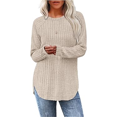 Ollysqiar Femmes à Manches Longues Henley T-shirt Mauritius Robes Grande Taille Pour Femmes Rondes Frostluinai Hauts Pour Femmes Manches Longues T-Shirts Pull Violet Femme T-shirt à manches longues et col rond en tricot côtelé pour femme - Couleur unie - Coupe ajustée, Rouge, T-Grand Débardeur en tricot côtelé pour femme Débardeurs décontractés sans...