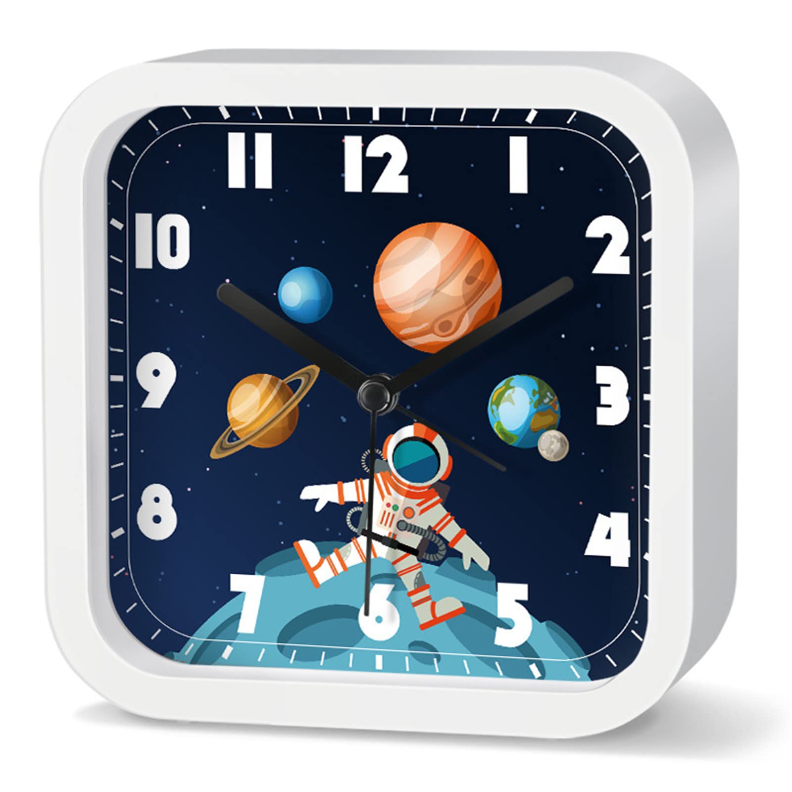 Réveil, Réveils De Chevet, Cloche En Métal Petit Réveil Enfants Joli Reveil Astronaute SHISEDECO Petite Horloge De Table Classique Sans Tic-tac Avec Rétroéclairage, Horloge De Bureau Astronaute à Piles Avec Verre HD Pour Salon, Chambre à Coucher, Chevet, Décoration Intérieure (bleu Horloge à CADEAU IDÉAL for LES ENFANTSLa conception de forme mignonne en fait une décoration élégante même si vous n'avez pas besoin de l'utiliser. Nom : RéveilsMatériau : MétalTaille: 16,5*11,5*5,5 cmContenu de l'emballage : 1 x réveil (pile AA non incluse)Avis:1., Veuillez vérifier la taille avant d'acheter. Nous vous répondrons dans les 24 heures. Réveil numérique pour enfant avec veilleuse 7 couleurs, réveil pour garçons et filles, fonction snooze, réveil pour enfants pour table de chevet, bureau, cadeau Réveil for enfants avec matériau ABS sûr, idéal for la chambre, la veilleuse for enfants, la détente, le camping en plein air. Le cadran en verre transparent est facile à nettoyer. Il fait 12x12x4 cm, donc pas trop encombrant sur la table de nuit. Il fonctionne avec 1 pile AA 1,5V au... HORLOGE D'APPRENTISSAGE : Conçue pour, permet aux enfants de distinguer quand il est temps d'aller au lit et quand se lever, avec une douce veilleuse, très appréciée des enfants. Garantie de satisfaction: Si vous avez des questions ou des suggestions sur ce produit, n'hésitez pas à nous envoyer un e - mail.