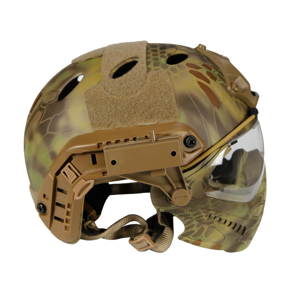 La résistance aux chocs est atteinte d’au moins 600 FPS Matériel: Casque: plastique d'ingénierie ABS Masque: Polyuréthanes thermoplastiques (TPU) Lens: PC Système d'assemblage côté casque: Nylon Description: Poids net: environ 0,9 kg Taille: 25 * 31cm - (9., 84 * 12., 2inch) Ce produit a passé avec succès le test de boule de chute ANSI Z80., 3, entre -10 ° C et 42 ° C. ★ Design & Feature: * Entièrement réglable de la taille du bandeau à la hauteur du casque et conçu avec un cadran arrière pour le réglage de l'étanchéité. ★ Fournit une protection de la tête et du visage contre les bébés qui arrivent. * Rembourrage intérieur doux pour un ajustement confortable, ce qui fait un excellent travail de protection contre les chocs et les chocs. Casque Airsoft Equipement Tactique LEJUNJIE PJ Tactical Fast Helmet & Full Covered Military Protective Army Combat Airsoft Casque De Paintball Protéger Les Oreilles Avec Un Masque De Protection Casque Militaire Protege Oreille This tactical helmet and mask set offers comprehensive protection against impacts and debris, ensuring maximum safety during intense activities like airsoft... Casque extérieur masque facial PC lentille antichoc tête bouche protecteur tenue