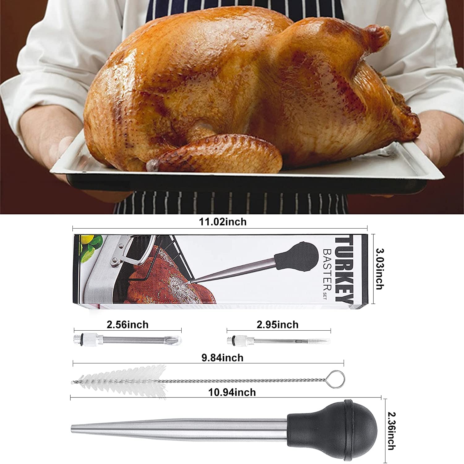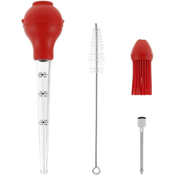 Caractéristiques principales : Facile à utiliser : l'ampoule en silicone a une grande flexibilité et peut générer une forte aspiration. 5 : l'acier inoxydable ne fondra pas. Qualité supérieure : cet ensemble de poire à dinde est fabriqué en acier inoxydable 304 de haute qualité et en silicone de qualité alimentaire, sûr, respectueux de l'environnement et réutilisable Dimensions : longueur totale : environ 26 cm, diamètre de l'ampoule en silicone : env., 5,6 cm. Description du produit : Avantages : 1 : Se visse solidement dans la poire. Il peut rôtir la poire pour une viande parfaite. Il peut facilement recueillir la sauce et le beurre dans la poêle chaude. En une seule pression, vous pouvez le remplir avec environ 155,9 g d'assaisonnement, prêt à ajouter plus de saveur à votre repas La marinade peut être injectée directement dans la viande avec l'aiguille. Facile à nettoyer : ce kit de poire est amovible et peut être nettoyé au lave-vaisselle, et la brosse de nettoyage incluse est conçue pour s'adapter à toute la longueur du tube et est facile à nettoyer, en détachant simplement l'ampoule de dynamitage de la seringue ; en utilisant notre brosse de nettoyage incluse pour enlever toutes les particules. Poire Arrosage Viande Poire à Sauce Poulet Turquie Barbecue, Kit Seringue De Dinde Inclus Aiguille D'Injecteur, Pinceau Burette De Barbecue Y Brosse De Nettoyage, Variété De Seringues à Viande Poire Pour Arroser L'ensemble de l'applicateur et de la seringue va également au lave-vaisselle et est livré avec une brosse de nettoyage qui s'adapte à toute la longueur du tube pour un nettoyage facile Puissance d'aspiration maximale : pressez la tête de l'ampoule, et la poire à dinde crée une aspiration puissante, elle est capable de recueillir des liquides sans effort. La seringue en silicone/inox injecte les marinades directement au cœur de la viande. Le compte-gouttes aspire facilement les sauces, et la brosse de nettoyage... Nous ferons de notre mieux pour vous montrer la couleur exacte., 2., Les mesures étant prises à la main, les tailles indiquées peuvent varier légèrement. 2 aiguilles différentes : les aiguilles d'injection de 2 tailles différentes sont incluses : l'une mesure 75 mm de long avec un trou d'injection de 3 mm pour injecter des viandes fines, et l'autre est un trou d'injection de 64 mm avec un trou d'injection de 4 mm pour injecter des marinades épaisses dans vos aliments. Liste des pièces : 1 injecteur de poire à dinde, 2 aiguilles, 1 brosse de nettoyage., Remarque : 1., Il peut y avoir de légères différences entre l'image et la couleur réelle du produit. Poire Pour Arroser La Viande FACULX Poire à Dinde Pour La Cuisine Arrosez la volaille et les rôtis pour des coupes humides et savoureuses sans désordre. 6 : Grande capacité de 155,9 g. Pour infuser des jus savoureux selon vos différents besoins, herbes, sauces et graisses, garantit que votre plat est plein de saveur à chaque bouchée 3 : tube extra long pénètre en profondeur.