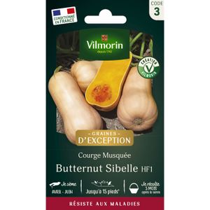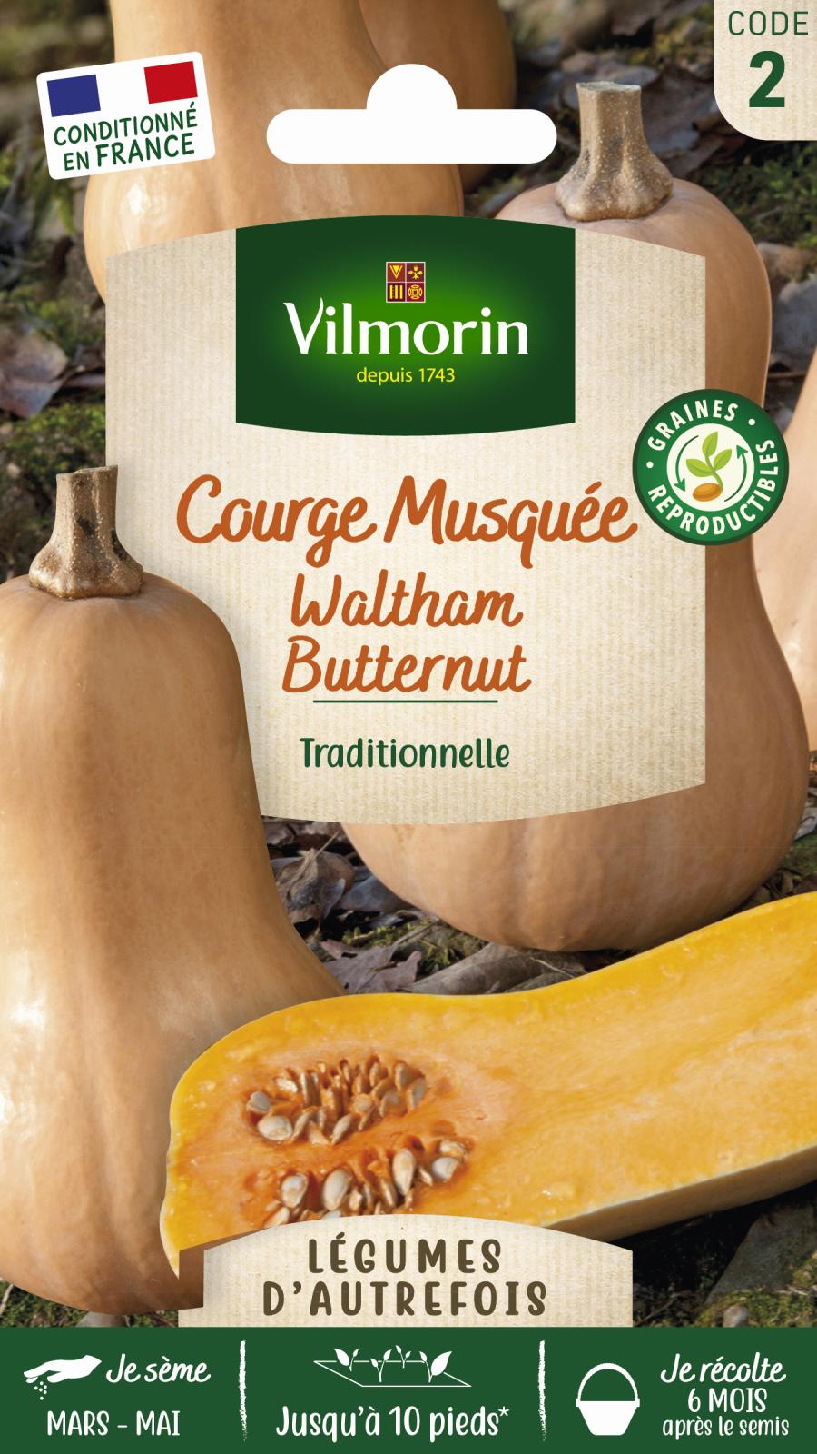 Graines Courgettes Vilmorin - Courge Musquée Waltham Butternut Graines Légumes Butternut Graines de courge butternut Waltham Sachet de 3 g de graines Courge Musquée Waltham Butternut qui se récoltent d’octobre à décembre. C’est une variété à la chair orange, parfumée et très sucrée VILMORIN - Sachet Petits Modèles - Courge Waldham Butternut, BUTTERNUT , 10 GRAINES- PROD., 2018 Courge musquée Waltham butternut Bio série 2 sachet graines 2 g - Vilmorin