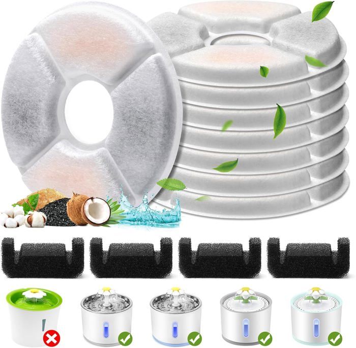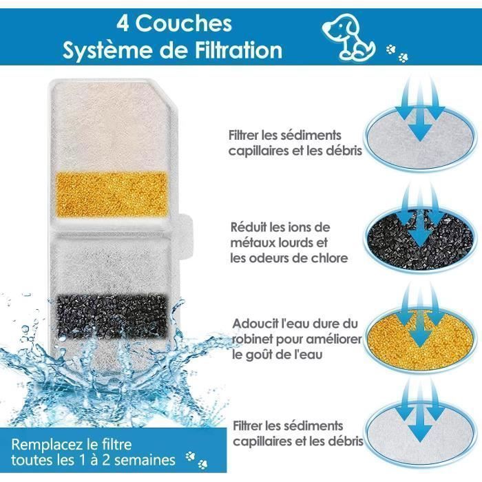 Filtre Fontaine Eau Chat Filtre Petkit Fontaine Eau Chat DownyPaws , 6 Filtres De Fontaine U00e0 Eau Remplacement, Charbon Actif Filtre De Pour, Convient Pour DPWFP6 Filtre Charbon Actif Eau Robinet Filtres Triple Filtration Charbon Actif Résine Filtration efficace : Le filtre à eau avec système de filtration multicouche, est composé de coton PP, de charbon actif et de mousse souple. Cette combinaison élimine efficacement les impuretés, les odeurs et les particules de l'eau, garantissant ainsi à votre animal l'accès à une eau propre et saine Grâce à leur fabrication en tissu non tissé, associée à un charbon actif provenant de coquilles de noix de coco et à de la résine d'échange d'ions, ils sont particulièrement efficaces pour éliminer les impuretés telles que les poils et la saleté Description du produit 6 PCS Filtre Fontaine Eau Chat, Filtres de Fontaine à Eau Remplacement, avec Système de Triple Filtration avec Résine et Charbon Actif , Convient pour W04SP Mode d'emploi Veuillez nettoyer régulièrement le distributeur d'eau Filtre Fontaine Chat GWAWG 11 Filtre Fontaine Eau Chat Filtre Pour
