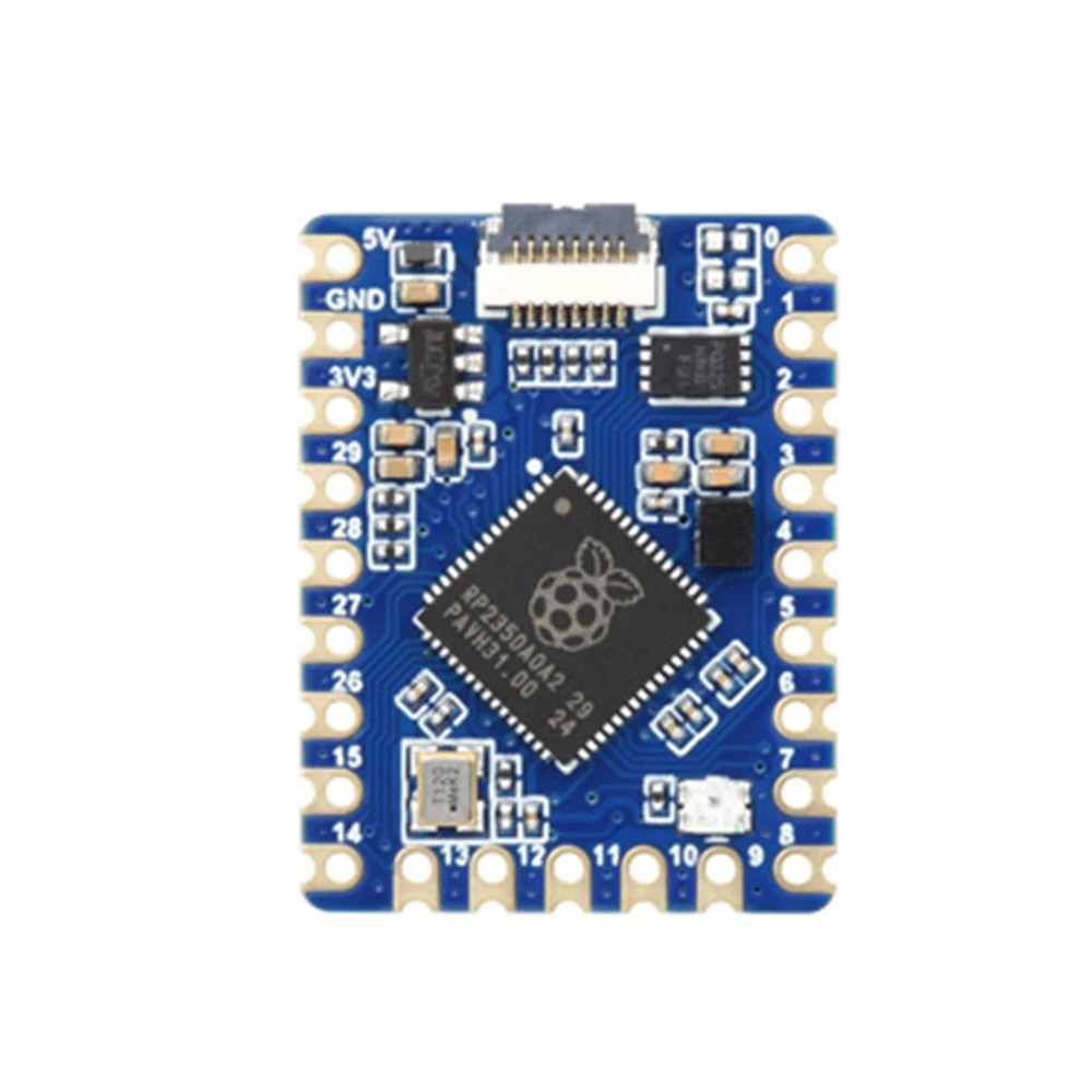 Onboard FPC 6PIN connector, adapting USB Type-C port via adapter board. Core2350B core board, a compact size with onboard RP2350B main controller, adapting 48 multi-function GPIO pins for easy development and integration. Puce microcontrôleur RP2350B conçue pour une architecture double cœur et double architecture. Elle est équipée d'un processeur ARM-M33 double cœur et d'un processeur RISC-V Hazard3 double cœur, avec une fréquence d'horloge jusqu'à 150 MHz Adafruit Unveils a Work-in-Progress Raspberry Pi RP2350B Single-Board... 2 × I2C, 2 × UART, 8 × 12-bit ADC, 24 × controllable PWM channels. Adafruit Unveils a Work-in-Progress Raspberry Pi RP2350B Single-Board 12 × Programmable I/O (PIO) state machines for custom peripheral support , USB 1., 1 with device and host support. Drag-and-drop programming using mass storage over USB. Kit Développement 48 Gpio RP2350B-Plus-W Development Board, Raspberry Pi RP2350B Dual-core & Dual-architecture Microcontroller, Supports Wi-Fi And Bluetooth, 520KB SRAM And 16MB Flash Memory Microcontrôleur Double Cœur Supports C/C++, MicroPython, Arduino IDE It features a compact size with onboard RP2350B main controller, adapting 48 multi-function GPIO pins for easy development and integration. Core2350B1-Kit, include Core2350B1 core board + USB port adapter + FFC cable Board specifications --RP2350B microcontroller chip designed by Raspberry Pi in the United Kingdom --Adopts unique dual-core and dual-architecture design: dual ARM Cortex-M33 or dual Hazard3 RISC-V processors support, flexible clock running up to 150 MHz --2MB PSRAM, with onboard 520KB S-R-A-M and 16MB Flash memory --Onboard FPC 6PIN connector, adapting USB Type-C port via adapter board --64 pins arranged in a standard 2., 54 mm pitch for easy integration into carrier boards --USB 1., 1 with device and host support --Low-power sleep and dormant modes --Drag-and-drop programming using mass storage over USB --48 × multi-function GPIO pins --2 × I2C, 2 × UART, 8 × 12-bit ADC, 24 × controllable PWM channels --Accurate clock and timer on-chip --Temperature sensor --12 × Programmable I/O (PIO) state machines for custom peripheral support Package Content Core2350B1 core board × 1 RP-Tiny-Adapter-B × 1 FFC 6PIN cable × 1 Development Resources https://www., waveshare., com/wiki/Core2350B0