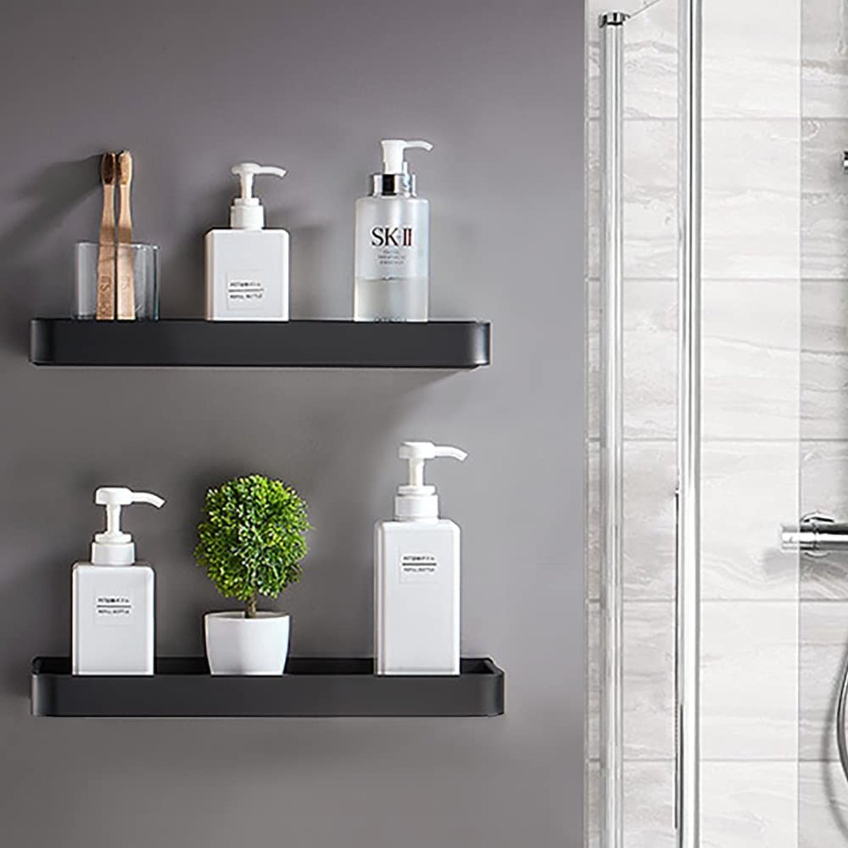 étagère Murale 30cm Noire Étagère De Douche Carrée Sans Perçage Étagères Murales En Aluminium étagère Cuisine Sans Vis dans la salle de bain et peut également être utilisée comme étagère à épices dans la cuisine. DescriptionGrande Capacité: La taille du etagere douche est de 30 * 12 cm (11,8 * 4,8 pouces), ce qui peut facilement accueillir du shampooing, du gel douche, du nettoyant pour le visage, du savon, du et d’autres articles de toilette. L’étagère est dotée d’une barrière de bord de 5 mm de haut pour protéger les articles contre les chutes.Matériau de Haute Qualité: Nos etagere... Étagère murale sans percer : la sélection produits Leroy Merlin de ce mercredi au meilleur prix ! Retrouvez ci-après nos 389 offres, marques, références et promotions en stock prêtes à être livrées rapidement dans nos magasins les plus proches de chez vous 【Robuste et durable】L'étagère murale en aluminium est fabriquée en aluminium de haute qualité avec un excellent revêtement antirouille, qui est imperméable et inoxydable, robuste et durable, avec des bords lisses. L'étagère intégrée pour la douche offre un confort supplémentaire. Lot De 2 Etagere Douche Sans Percage, Etagere Murale Salle De Bain Les étagères murales peuvent utiliser pleinement l'espace mural et sont utilisées pour placer des cadres photo, des photos, des trophées, des petites plantes et d'autres décorations afin de rendre votre maison plus ordonnée et plus belle. Description du produit Caractéristiques: - L'étagère murale en aluminium est fabriquée en aluminium de haute qualité, durable, étanche et inoxydable, et peut facilement supporter jusqu'à 20 livres. - Rangez les canettes et les bouteilles dans l'étagère de douche pour qu'elles soient faciles à prendre et à utiliser. Caractéristiques techniques: Matériau: Aluminium Couleurs: Noir Taille: 30×12×4 cm/ 11., 81×4., 72×1., 57 inch Le paquet contient: 2×Etagere Murale Sans Percage 4×Adhésif Avertissement De Sûreté Ne pas dépasser la limite de poids de 9 kg. Cette étagère de salle de bain ne convient pas seulement à la salle de bain, mais aussi à la cuisine, au salon, etc. La colle ne convient que pour les surfaces lisses, comme le carrelage, le verre, les panneaux de bois lisses, etc. Elle peut facilement supporter un poids de 20 livres après une installation réussie. - Notre étagère murale peut être exposée de deux manières, soit avec la lèvre surélevée vers le haut pour éviter que les objets ne tombent, soit avec la lèvre surélevée vers le bas, ce qui vous donne une étagère avec une surface plane.