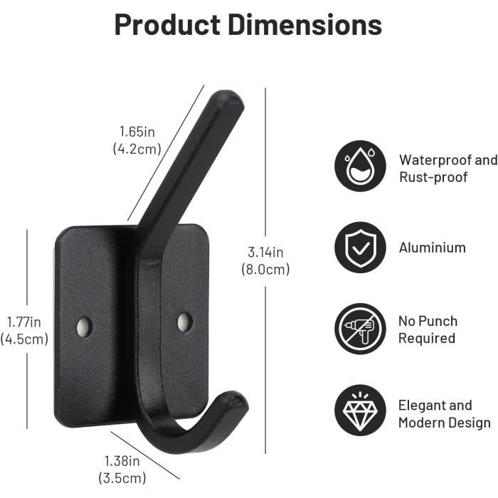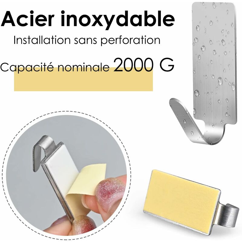 La surface polie en argent est belle et pratique. Ce crochet autocollant ne nécessite aucun perçage et n'endommagera pas la surface. Crochets Auto-adhésifs sont faciles à installer et à utiliser, parfaits pour suspendre des couverts, des serviettes, des vêtements, des chapeaux, des petites plantes, des clés et bien plus encore, un fournitures essentiel pour la vie de tous les jours. Newaner 6 Pièces Crochets Adhesifs Acier Inox, Crochet Mural Sans Le design moderne et minimaliste des crochets adhesifs muraux s’intègre à tout type de decoration L’adhésif arrière fort adhère facilement au mur. Convient pour les carreaux de céramique, marbre, verre, métal et d'autres surfaces lisses, peut être utilisé dans la salle de bain, chambre à coucher, cuisine, bureau et d'autres espaces Crochet Adhesif Mural 12 Pcs Crochet Plastique Adhésif Crochets Adhésifs Rotatifs À 360 Accroche Torchon Matière principale sur la masse totale du produit : Acier inoxydable · Famille de couleur : Gris / argent · Nom de la série : Bathroom hooks