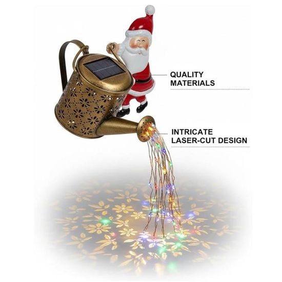 Caractéristiques : 1., Fonctionnement à l'énergie solaire et économie d'énergie : Notre arrosoir solaire d'extérieur se recharge à la lumière du soleil pendant la journée et s'allume automatiquement le soir. Illuminez votre saison des vacances avec l'arrosoir de Noël, conçu pour améliorer n'importe quel environnement avec sa lueur chaleureuse. Alimentée par l'énergie solaire, cette lampe LED présente une esthétique vintage qui complète à la fois les espaces intérieurs et extérieurs Caractéristiques : Matériau : Fer + Verre Couleur de la lumière : Blanc chaud Contenu de l'emballage : 1 x Lampe solaire d'extérieur 1 x Support PèRe NoëL Remarques : Placez l'arrosoir dans un endroit exposé à la lumière directe du soleil pour une performance optimale. Polyvalent : Que ce soit comme décoration de jardin pour une allée, une terrasse ou un balcon, l'arrosoir s'adapte à tous les styles. Aucun câble ni installation compliquée n'est requis. Decoration Noel Exterieur Arrosoir Solaire Père Noël, Deco Noel Exterieur Solaire, Décoration De Jardin Étanche Avec LED Lanterne Solaire Extérieure Élégant arrosoir solaire d'extérieur : Notre arrosoir solaire d'extérieur allie un éclairage pratique à un charmant design. À combiner avec d'autres lampes solaires de jardin ou comme pièce autonome. Installation facile et entretien minimal : Cette décoration de jardin s'encastre simplement dans le sol ou se suspend. Magnifique décoration de jardin avec lumières LED : Cette guirlande lumineuse solaire d'extérieur se compose d'une délicate guirlande en forme d'arrosoir, décorée de boules de verre LED et de motifs Père Noël. Arrosoir de jardin - Lampe LED solaire - Décoration de jardin - Décoration de jardin (avec Elle crée une atmosphère magique en tant que décoration de jardin ou noel decoration, idéale pour des soirées romantiques, des fêtes ou même comme deco noel originale. Lanterne Solaire pour Arrosoir d'Extérieur - Étanche IP65 - Décoration...
