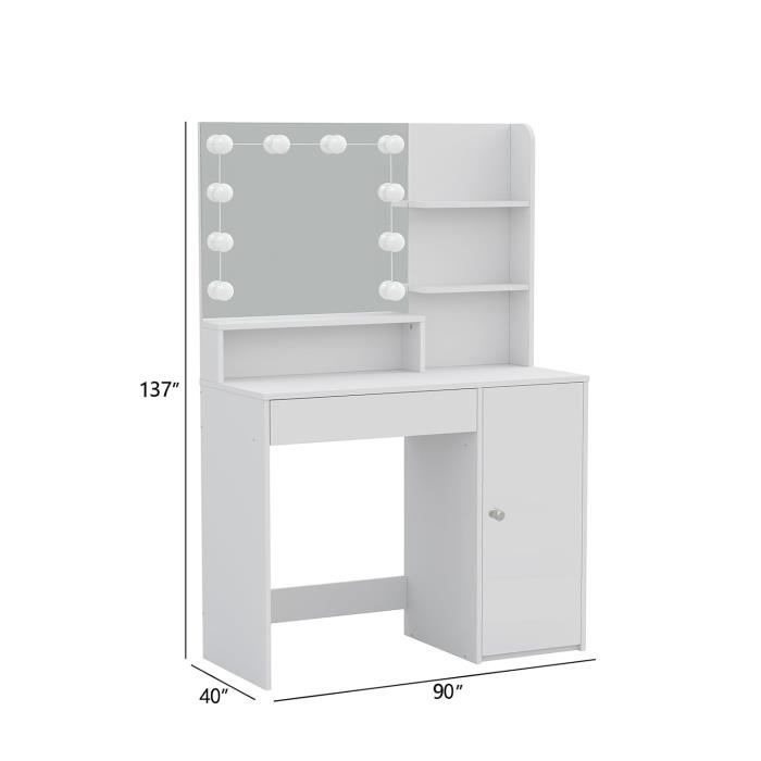 La structure en X, associée à une conception anti-basculement, assure une charge stable et sûre. Son système de rangement performant comprend 6 compartiments cachés et 1 tiroir, vous permettant d'organiser soigneusement tous vos objets. Structure stable et sûre : La table basse est composée d'une structure métallique avec un support en X. Cosmétiques, papeterie et autres articles peuvent être rangés de manière ordonnée pour un rangement optimal. Caractéristiques principales : Le miroir et le petit plateau facilitent le maquillage. RELAX4LIFE Armoire a Bijoux Murale, Armoire a Bijoux avec Miroir Sans... AOGLLATI Coiffeuse avec Miroir LED, Table de Maquillage Adulte avec 2 Tiroirs et Étagères Le tiroir est doté d'une poignée ronde pour une ouverture et une fermeture faciles. Cette commode est non seulement un outil, mais aussi une décoration raffinée pour rehausser le style de votre intérieur. Aucune prise supplémentaire n'est nécessaire pour se maquiller ou travailler, vous permettant de recharger votre ordinateur à tout moment pour un bureau bien rangé. Espace de rangement suffisant : La commode dispose de 6 compartiments de rangement cachés et d'un grand tiroir. Coiffeuse Bureau Multifonction Avec Miroir RELAX4LIFE Coiffeuse Avec Tabouret Et Miroir Rotatif à 360°, Table De Maquillage 2 En 1 En Bois Coiffeuse Pliante Avec Miroir Le plateau s'ouvre avec un miroir intégré et un mini-comptoir, pratique pour les soins de la peau et le maquillage ; une fois fermé, il peut servir de bureau ou de table basse pour un gain de place Une poignée ronde pratique facilite l'ouverture et la fermeture du tiroir. Une fois ouverte, le miroir et le petit plan de travail facilitent les soins de la peau et le maquillage ; une fois fermée, elle se transforme en table de travail. Les trous de vis sont esthétiques et élégants, mettant en valeur l'apparence du meuble. Description du produit : Cette coiffeuse répond aux besoins variés de la vie moderne. De plus, elle est équipée de ports de charge secteur, USB et Type-C pour recharger vos appareils électroniques à tout moment. Détails raffinés : L'autocollant pour trou de vis du poste de travail lui confère une apparence soignée et généreuse, et son design simple s'adapte à différents styles, tels que les salons et les chambres.