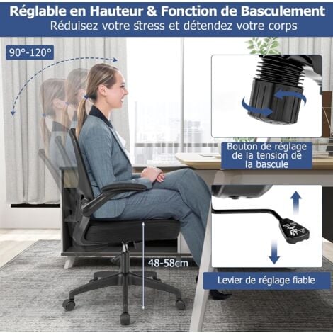 Chaise pivotante de haute qualité pour une meilleure posture assise : la chaise pivotante ergonomique LIYURUI soutient une bonne posture assise grâce à la forme précise du dossier, à la fonction pivotante et à l'option de réglage individuel. Profitez d’un confort optimal avec cette chaise de bureau ergonomique haute, idéale pour les bureaux réglables. Assise rembourrée, dossier respirant et repose-pieds ajustable Il peut soulager efficacement la tension sur les bras, le cou et toute la zone des épaules. Vous pouvez profiter du mouvement à bascule confortable pendant votre temps libre. Largeur d'assise : 51 cm - Profondeur d'assise : 48 cm - Hauteur des accoudoirs : 68 - 76 cm - Hauteur de la chaise : 108 - 116 cm Chaise Bureau Réglable Accoudoirs Rabattables Mimoglad Chaise De Bureau Ergonomique à Dossier Haut Avec Support Chaise Pivotante Dossier Haut Confort Même pendant de longues périodes de travail, il permet une position assise active. La hauteur du siège peut être ajustée de 8 cm et convient à la plupart des gens. Le levier de réglage pneumatique vous permet de garder vos pieds à plat sur le sol avec vos cuisses horizontales. Accoudoirs rabattables pour économiser de l'espace : les accoudoirs pivotent et restent droits, ce qui permet à la chaise de bureau de s'adapter facilement sous n'importe quel bureau et d'économiser de l'espace. Vinsetto Fauteuil de bureau chaise de bureau en maille respirante Le coussin d'assise et les accoudoirs sont rembourrés avec de la mousse à mémoire de forme haute densité. La chaise de travail se verrouille à n'importe quel angle entre 90° et 110°, un cylindre à ressort pneumatique à hauteur réglable de 8cm ! Le dossier haut offre...