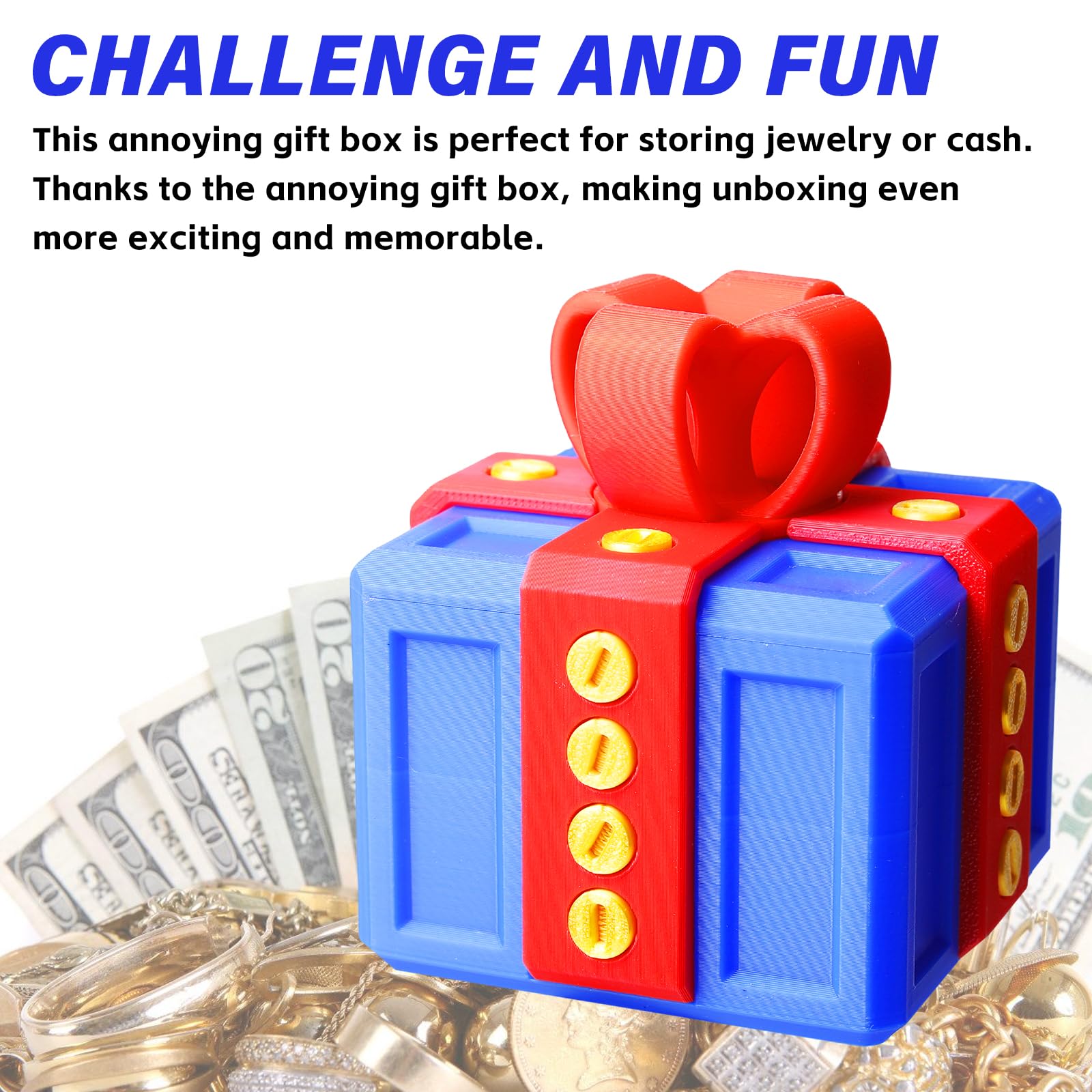 Défi astucieux : le coffret cadeau ennuyeux n'est pas seulement un contenant, c'est aussi un casse-tête. Boîte 3D Défi Ouverture Gift Box Boîte Cadeau 'Really Annoying' - Jeu Farce Et Attrape - Impression 3D - Cadeau Humoristique - 8x8x8 Cm Cadeau Humour Original Coffret Cadeau Casse-tête Caractéristique : 1., Qu'il s'agisse d'un anniversaire, d'une fête ou d'une célébration spéciale, ce cadeau original transforme n'importe quel cadeau en une expérience ludique et mémorable. Le nœud vissé n'ajoute pas seulement de la décoration mais cache le secret pour déverrouiller la boîte, ce qui rend le puzzle encore plus intrigant. Adapté à tous les âges, c'est le choix idéal pour rendre les cadeaux plus mémorables et plus amusants ! La fonction de rangement par rotation garantit que tout reste bien en place. Ce n'est qu'en retirant toutes les vis et en démontant la structure de la boîte que vous pourrez accéder au cadeau que vous avez préparé à l'intérieur. Surprenez vos proches avec cette version créative des boîtes-cadeaux traditionnelles. Avec leurs vis astucieuses, ils créent un moment hilarant et déroutant lorsque le destinataire essaie de les ouvrir. Cette boîte à vis unique garantit à vos proches de profiter des joies des fêtes bien avant même de l'ouvrir ! Boîte cadeau ennuyeuse : Ces boîtes cadeaux avec vis sont parfaites pour les farceurs qui aiment faire sourire les gens. Prank Rangement Torsadé Boîte Cadeau Farce Really Annoying - Rangement à Vis - Impression 3D - Blague Boite Explosion Surprise Fabriquée à partir d'un matériau imprimé en 3D de haute qualité avec des coins renforcés, la boîte peut contenir en toute sécurité des articles pesant jusqu'à 5 livres pendant l'emballage Fabriquées à partir de matériaux de haute qualité, ces boîtes farceuses sont conçues pour résister à un usage répété et aux éclats de rire.