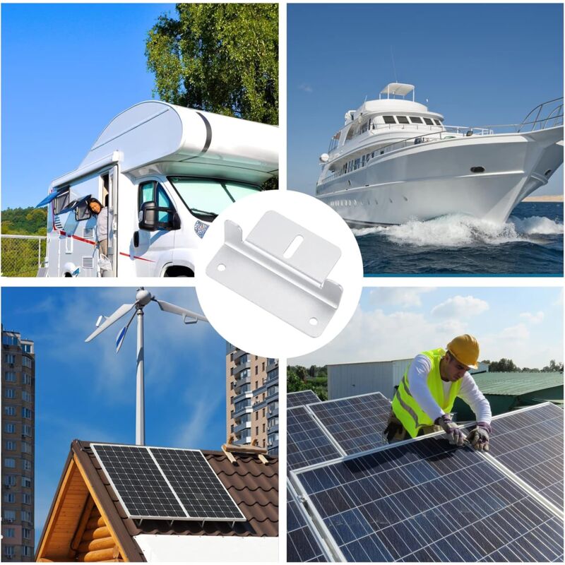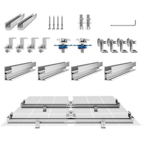Accessoire énergie Solaire Anti-corrosion Kit De Fixation Pour Panneau Solaire - REVOLT - Aluminium - 200 W/h - Toiture Solaire - 4 Design Sans Vis Rapide Large Compatibilité - Ce kit est parfait pour l'installation de panneaux solaires sur des toits plats ou inclinés, et est compatible avec les systèmes solaires en réseau et hors réseau dans diverses applications telles que les maisons, les camping-cars et les bateaux. Fixation pour panneau solaire Sunfer 01V1 Le kit complet d'accessoires de fixation pour 4 panneaux solaires que nous proposons répond parfaitement à ces exigences, garantissant à la fois solidité, durabilité, et facilité d'installation La fabrication de précision assure une manipulation aisée et une installation rapide. Économie de Temps et d'Argent - Équipé de boulons et écrous, ce kit vous permet d'installer rapidement vos panneaux solaires, staffa di montaggio del pannello solare da 30 mm réduisant ainsi les coûts d'installation tout en vous offrant une fiabilité et sécurité exceptionnelles. Kit de fixation pour panneau solaire en ABS - coloris gris Vous pouvez monter votre panneau solaire sans outils supplémentaires Nos rails de montage pour panneaux solaires sont la solution parfaite pour installer votre système photovoltaïque de manière sûre et efficace. Caractéristiques : Alliage d'aluminium de haute qualité: ces supports sont fabriqués en alliage d'aluminium robuste, dont la surface anodisée garantit une excellente résistance à la corrosion et une stabilité aux UV. Installation rapide et facile: les supports de panneaux solaires sont équipés de vis et d'écrous qui permettent une installation facile et rapide sur différents toits plats ou surfaces irrégulières. Parfaits pour une utilisation en extérieur. Haute Qualité et Durabilité - Fabriqué en alliage d'aluminium de qualité supérieure avec traitement anodisé, ce kit résiste à la corrosion et garantit une longue durée de vie même dans des environnements extérieurs difficiles. Il reste néanmoins extrêmement stable et robuste grâce à l'alliage d'aluminium de haute qualité. Fabriqués en alliage d'aluminium de haute qualité et dotés d'une surface anodisée résistante à la corrosion, ces supports offrent une durabilité et une résistance aux intempéries exceptionnelles.