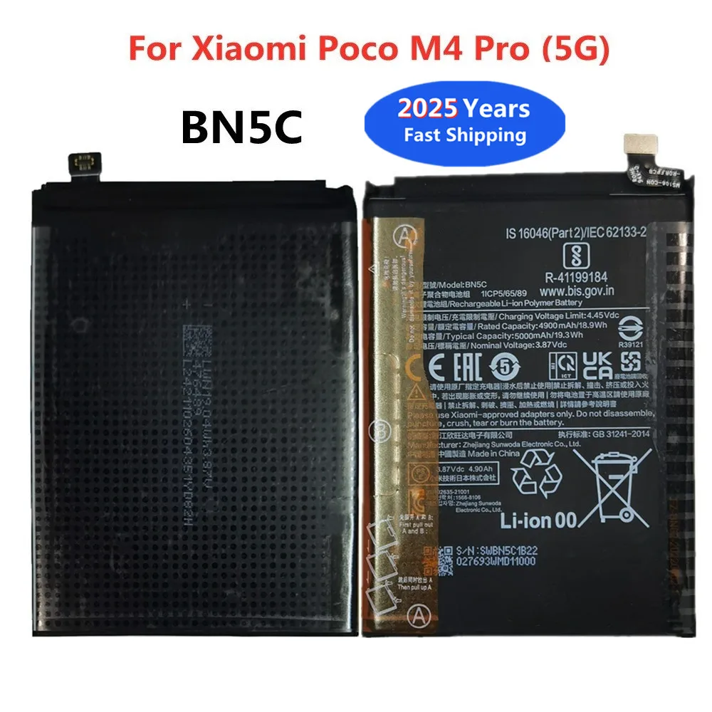 Non compatible avec : ️POCO M4 PRO 4G Batterie neuve avec zéro cycles batterie de rechange complètement neuve, jamais utilisée et avec zéro cycle de charge. Contenu du colis : en plus de la batterie, vous recevrez un kit d'outils avec tournevis et outils nécessaires pour le démontage et l'installation du smartphone. Batterie d'origine BN56 BN5C BN5H BN5Q BN5A BN62 pour Xiaomi Poco M4 M3 M2 Pro M5 M6 C65 Redmi Note 11E 10 9 /Redmi 9T 9A 9C 13C Contrôle qualité strict toutes nos batteries sont testées soigneusement avant l'expédition pour garantir un produit fonctionnel, sûr et sans défauts. Toutes nos XIAOMI BN5C Batterie sont neuves, compatibles pour Xiaomi MIUI Poco M4 Pro 5G. Toutes BN5C batteries a passé les attestations internationales ISO9001, RoHS et de certification CE Batterie XIAOMI BN5C Compatible Batterie BN5C Compatible Modèle Xiaomi MIUI Poco M4 Pro 5G Remplacement Batterie Xiaomi POCO Longue durée de vie - Technologie Lithium sans Effet Mémoire. Protection contre: Courts-circuits, Surchauffes, Surtensions. Sécurité et Fiabilité. Haute qualité, prix bas, livraison et rapide! Produit Batterie Xiaomi BN5C Parfaitement compatible avec et Xiaomi MIUI Poco M4 Pro 5G