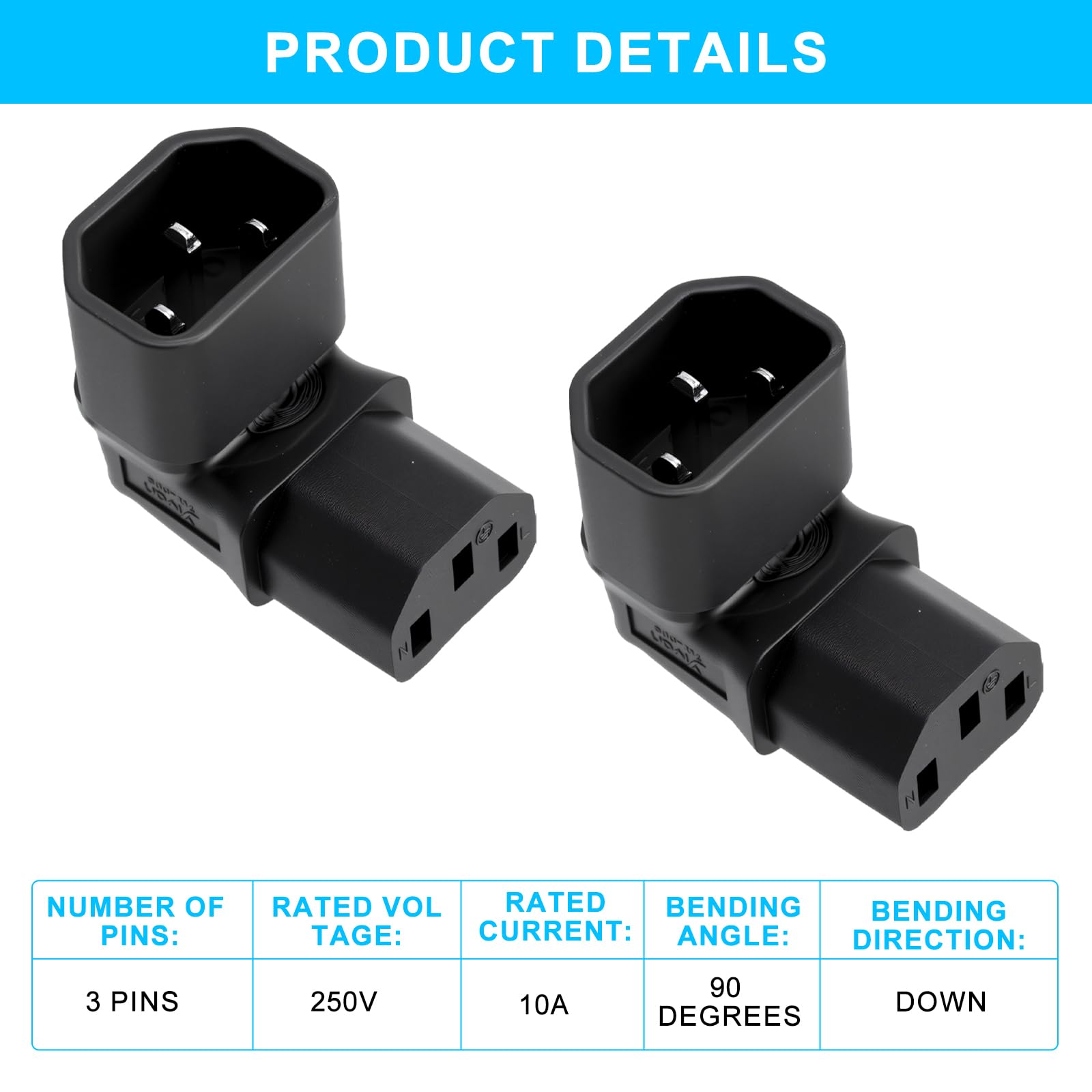 Ce lot de 2 prises ordinateur 90 degrés C14 vers C13 avec un angle vers le bas est la solution idéale pour les espaces restreints. Angle de 90 degrés : connecteur de prise d'alimentation à angle droit C14 ~ C13, couramment utilisé dans les espaces restreints. Protège les ports de l'appareil contre les dommages causés par les branchements et débranchements fréquents Conçues pour minimiser les torsions des câbles et protéger les connexions des appareils, ces prises choc coudées sont fabriquées en PVC ignifuge de haute qualité et équipées de contacts en cuivre, garantissant une excellente conductivité, une résistance à la corrosion et une longue durée de vie. Ce design évite les torsions inutiles des câbles et protège efficacement les connexions de vos appareils contre l’usure. Performance fiable et sécurité optimale :Avec une tension nominale de 250V et un courant de 10A, ces câbles offrent une alimentation stable, durable et sûre pour divers usages. Adaptateur Secteur Angle Bas HuaLiSiJi Cable Alimentation Coudé à 90° C13 Câble IEC Contact De Protection De Câble Type F (CEE 7/4) Vers Prise C13, Pour Ordinateur, TV, Moniteur, écran, Projecteur, Etc (Noir, 1.5m Adaptateur Alimentation Coudé Idéal pour un usage domestique ou industriel, ce câble alimentation coudé est un accessoire durable et pratique pour vos appareils électriques. Parfait pour les environnements exigus ! Grâce à ce câble alimentation 3 broches, vous êtes prêt à faire face à toutes les situations. Matériaux de haute qualité et durabilité exceptionnelle :Les prise choc coudées sont fabriquées en PVC ignifuge et respectueux de l'environnement, offrant robustesse et durabilité. Cable alimentation coudé - Trouvez le meilleur prix sur Idéal pour une alimentation fiable de vos appareils. RIIEYOCA Câble d'alientation C14 vers C5, IEC 320 C14 âle vers C5 Feelle Câble Adaptateur C5...