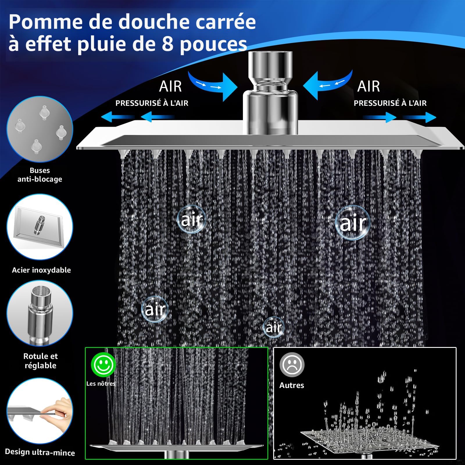 * Facile à installer, le pommeau de douche à main transforme l'eau / douche à effet pluie pour votre salle de douche. Améliorez votre douche avec ce bras d'extension de pommeau de douche à effet pluie en acier inoxydable de 6 po. Profitez d'une meilleure couverture et d'une expérience luxueuse. Installation facile, finition chromée Caractéristiques : * Nouveau et Fabriqué en matériau et pratique à utiliser. Caractéristiques : Finition : placage poli. Compatibilité : compatible avec les systèmes à basse pression et les douches à puissance, ce bras d'extension de pommeau de douche peut être utilisé dans une variété de paramètres et offre une flexibilité dans les options d'installation. Pratique : ce bras d'extension de pommeau de douche est fabriqué en matériau, durable et pratique pour une utilisation quotidienne. * Cette extension simple à installer est superbe et positionne le flux d'eau de votre douche sur votre tête pour une expérience de douche beaucoup améliorée. Pommeau de douche filtrante : Guide d'achat pour une expérience de Et il peut être utilisé avec une basse pression ou une douche puissante. * Composants plaqués de qualité, design léger unique. Veuillez vérifier que votre support de douche maintiendra le pommeau de douche à l'angle correct. Matériel: Acier inoxydable de haute qualité. Taille : Disponible en 15 cm, 20 cm, 25 cm, 30 cm, 35 cm. Conception : Plaqué fini poli, design léger. Type de... Amélioration Flux Eau Douche Moderniser Sa Salle De Bain Avec Un Pommeau De Douche Innovant Meilleur Pommeau De Douche * Il s'agit d'une rallonge de pommeau de douche robuste fabriquée à partir de tous les composants plaqués plaqué.