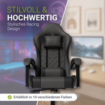 Fauteuil Gaming Chaise, Ergonomique Massage Gamer Chaise,Réglable Fauteuil Gamer Ergonomique Juskys Chaise De Bureau Montreal Racing Chaise De Bureau Ergonomique Réglable En Hauteur Et Rembourrée Chaise Pivotante Chargeable 120 Kg Chaise De Jeu PC (Bleu) (52D X 47W X 111H Cm Fauteuil Gaming Ergonomique ✅ Design racing moderne : Revêtement en simili cuir noir, gris ou turquoise – facile à entretenir et durable JUSKYS Chaise gaming HyperSeat – Fauteuil de jeu confortable en simili cuir La chaise HyperSeat de Juskys allie ergonomie et confort pour vos sessions gaming et vos journées de télétravail. Le design moderne et les couleurs disponibles en font une option parfaite pour tout espace de gaming ou de bureau. La chaise de bureau gaming HyperSeat de Juskys offre une combinaison optimale entre design ergonomique et apparence élégante, idéale pour de longues sessions de jeu ou de travail au bureau 120 kg Dimensions : - Chaise (LxPxH) : 63 x 67 x 121–131 cm - Dossier (LxH) : 52 x 74 cm - Hauteur d'assise : 47–57 cm - Épaisseur du coussin : 10 cm Contenu : - 1 x chaise gaming - 1 x kit de montage - 1 x manuel Livré en kit soigneusement emballé. Chaise de jeu ergonomique : Idéale pour gaming et bureau, dossier réglable pour un confort optimal même pendant de longues sessions Assise réglable en hauteur ✅ Chaise de jeu ergonomique : Idéale pour gaming et bureau, dossier réglable pour un confort optimal même pendant de longues sessions Avec son revêtement en simili cuir résistant et ses roulettes fluides, elle garantit mobilité et confort tout au long de la journée.