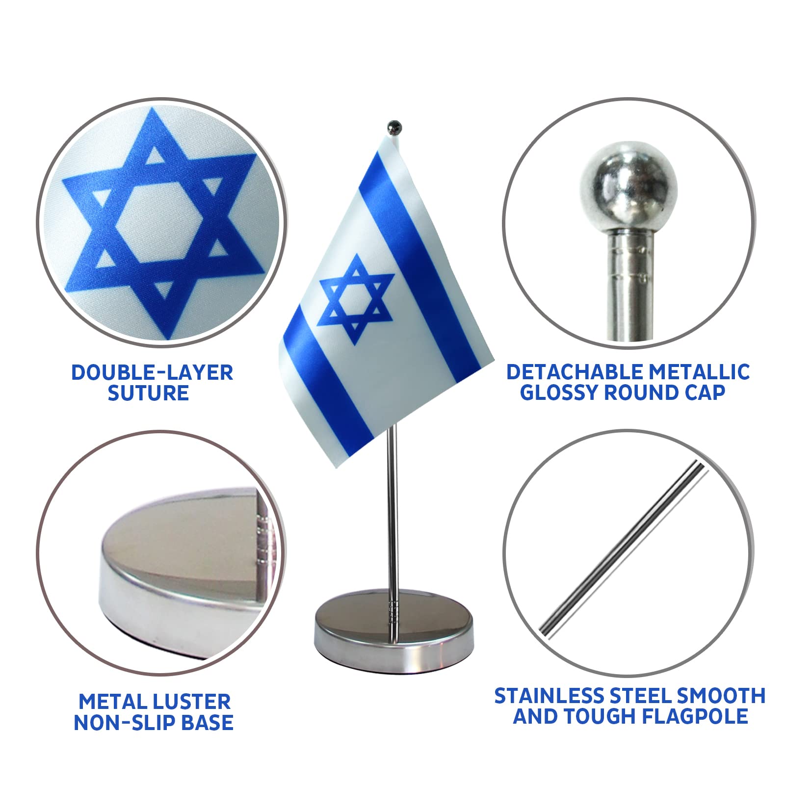 Le drapeau Israélien est un processus de découpe à chaud, la durée de vie est prolongée. Le drapeau Israélien mesure 14*21cm, diamètre de la base du drapeau en métal : 7cm, hauteur de la base du drapeau en métal: 30cm. Kafnik-Drapeau de bureau d'Israël avec base de mât en métal doré ou argenté, drapeau de pays, table, 14x21cm. 5 ౹ 10 vendus. 7,89€. -2% 8,07 Le mât est long d'env. 25 cm. Avec le support, la hauteur totale est d'env. 30 cm. Le drapeau d'Israël mesure quant à lui 10x15 cm. Nos drapeaux de table d... Remarque: Notre drapeau de la Israël et la base en métal avec sommet rond sont séparés et Il faut l'assembler et vous pourriez vous amuser à faire du bricolage. Hollylife Drapeau de la Bretagne 150 x 90 cm avec 2 œillets Métalliques Grand Drapeau National Décoration: Lors de conférences internationales, festival événements célébration, décoration de table. Vous pourriez l’utiliser pour les bureaux, les familles, les salles de conférence. Décoration Table Conférence Internationale Festival Drapeau Algérie De Table Avec Mât En Métal Petit Drapeaux Algérien De Bureau Drapeaux De Bureau Décoration événement Israël Le bord est plat, pas facile à dessiner. Description du produit Israélien Desk flag résistant à la corrosion en acier inoxydable stand base Israélien Desk flag International Conference Holiday decor Le Forfait Comprend: 1 petit drapeau de table de la Israël + 1 support pour mât.