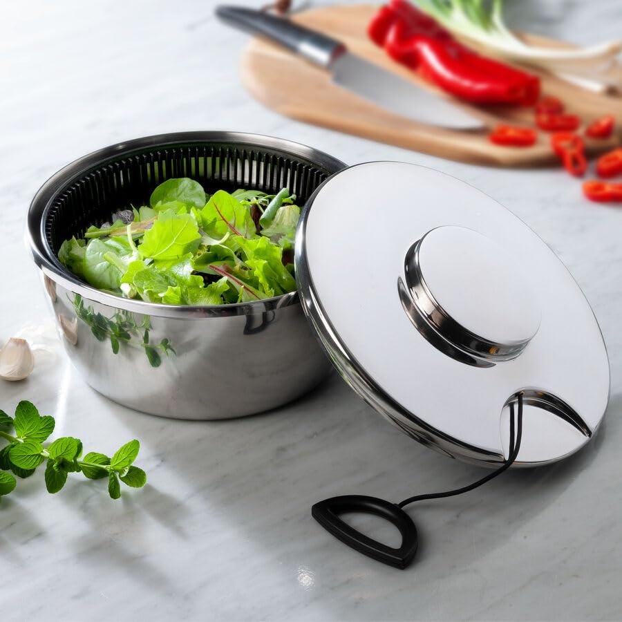 🥗 Matériaux de Haute Qualité & Grande Capacité – Fabriqué en acier inoxydable épaissi et en plastique robuste sans BPA, ce saladier résiste à l’usure et vous accompagne durablement. Il combine lavage, essorage, découpe et pressage dans un seul appareil pratique et compact. L'essoreuse à salade en acier inoxydable de 3,5 litres est conçue pour les familles et permet de laver et d'égoutter rapidement les salades, fruits et légumes Arrêter la rotation du panier à l'aide du bouton stop et réutiliser là en saladier design en inox pour servir votre salade. Sa capacité répond à de nombreuses occasions, 5 litres idéal pour une salade de 2 à 6 personnes 🥗 Essorage Rapide avec Frein Intégré – Grâce à son couvercle rotatif fluide et à son bouton de frein, vous essorez vos salades, fruits ou légumes en quelques secondes. UBRAVOO Grande essoreuse à salade avec fonction d'évacuation rapide de 🥗 Entretien Facile – Compatible Lave-Vaisselle – Démontage rapide, tous les éléments – y compris les 6 lames remplaçables – passent au lave-vaisselle (max 70°C / 158°F). Moins de nettoyage, plus de plaisir en cuisine ! Essoreuse à Salade Rapide Souvik Essoreuse à Salade En Acier Inoxydable 5L, Grande Spinner A Salade Avec Couvercle, Base Antidérapante, Salad Spinner Pour Laver Et Bouton D' Arrêt, Pour Laver Et égoutter Les Salades Essoreuse à Salade Ultra Rapide Livré avec 5 lames en acier inoxydable interchangeables, il permet de trancher, râper, émincer et bien plus encore en toute simplicité. Essoreuse à salade 5L en acier inoxydable Ce spinner à salade tout-en-un révolutionne la préparation de vos repas.