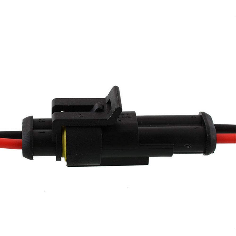 Connecteurs électriques automobiles étanches - VVIKIZY - 4 types - IP67 Connecteurs 2 Broches 16 AWG Lot De 150 Connecteurs électriques à épissure Rapide, Sans Soudure Bleu Connecteur Depissure De Fil Connecteurs A Sertir Isoles Pour Terminal 22 10 Awg Connecteurs Pour Bateau Camion Utilisation pour voiture, camion, bateau, moto et autres connexions filaires. Caractéristiques : Longueur du terminal : environ 1,5 mm. Contenu de l'emballage : 10 ensembles de connecteurs électriques Connecteurs étanches mâles et femelles 16 AWG avec fil de 10 cm. · Température de fonctionnement Connecteurs étanches mâles et femelles 16 AWG avec fil de 10 cm. Duokon Connecteur étanche de voiture 5 jeux de connecteurs électriques... Connecteur de boîtier rectangulaire noir à 2 positions (diamètre du trou : 0,6 cm). Convient pour moto, scooter, voiture, camion, quad, tricycle, caravane, marine, jet ski, bateau, etc.