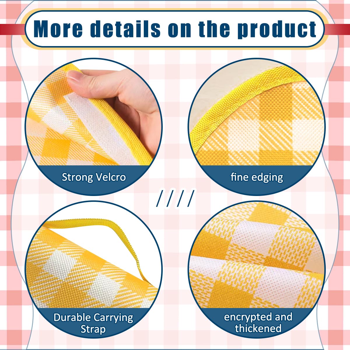 Couverture pique-nique en style nordique de couleur jaune • Mille et une couverture Couverture Pique-nique 200x300cm HAOPYOU Tapis De Pique Nique 200 X 200 Cm Couverture De PiqueNique Impermeable Pour Plage Et Accessoire Camping Randonnée Facile à nettoyer : Après une journée à la plage ou un pique-nique agréable, essuyez ou secouez simplement l'aimant pour un entretien rapide et sans effort, vous permettant ainsi de vous détendre. Que vous vous prélassiez à la plage ou que vous profitiez d'un séjour en camping, cette couverture vous accompagnera., 2., Conçue pour être pratique, cette couverture Jaune Couverture Pique Nique se range facilement dans un format compact, idéale pour vos aventures en plein air. Il suffit de l'essuyer ou de la mettre en machine après utilisation pour qu'elle soit toujours prête pour votre prochaine sortie., 4., Avec son look moderne et ses couleurs vives, cette couverture de camping Jaune Couverture Pique Nique ajoute une touche d'élégance à vos activités en plein air. Couverture Pique Nique - Non spécifié - 300x200CM - Imperméable - Pliable - Jaune et blanc. En 1 fois. 49,70 €. Prix de comparaison Couleur vive : D'un jaune vif, ce Jaune Couverture Pique Nique ajoute non seulement une touche de luminosité à votre extérieur, mais améliore également votre plaisir lors des journées ensoleillées à la plage ou au parc. Pas peur du vent] Cette couverture de pique-nique est équipée de 4 piquets pour la fixer sur la pelouse ou le sable, de sorte qu’elle reste en place même quand il fait du vent Matériau durable : Les aimants Jaune Couverture Pique Nique sont fabriqués à partir de matériaux de qualité capables de résister à diverses conditions climatiques difficiles, garantissant durabilité et longévité pour toutes vos aventures en plein air. Sa légèreté vous permet de l'emporter partout avec vous., 3., La couverture Jaune Couverture Pique Nique est non seulement fonctionnelle, mais aussi facile à entretenir.