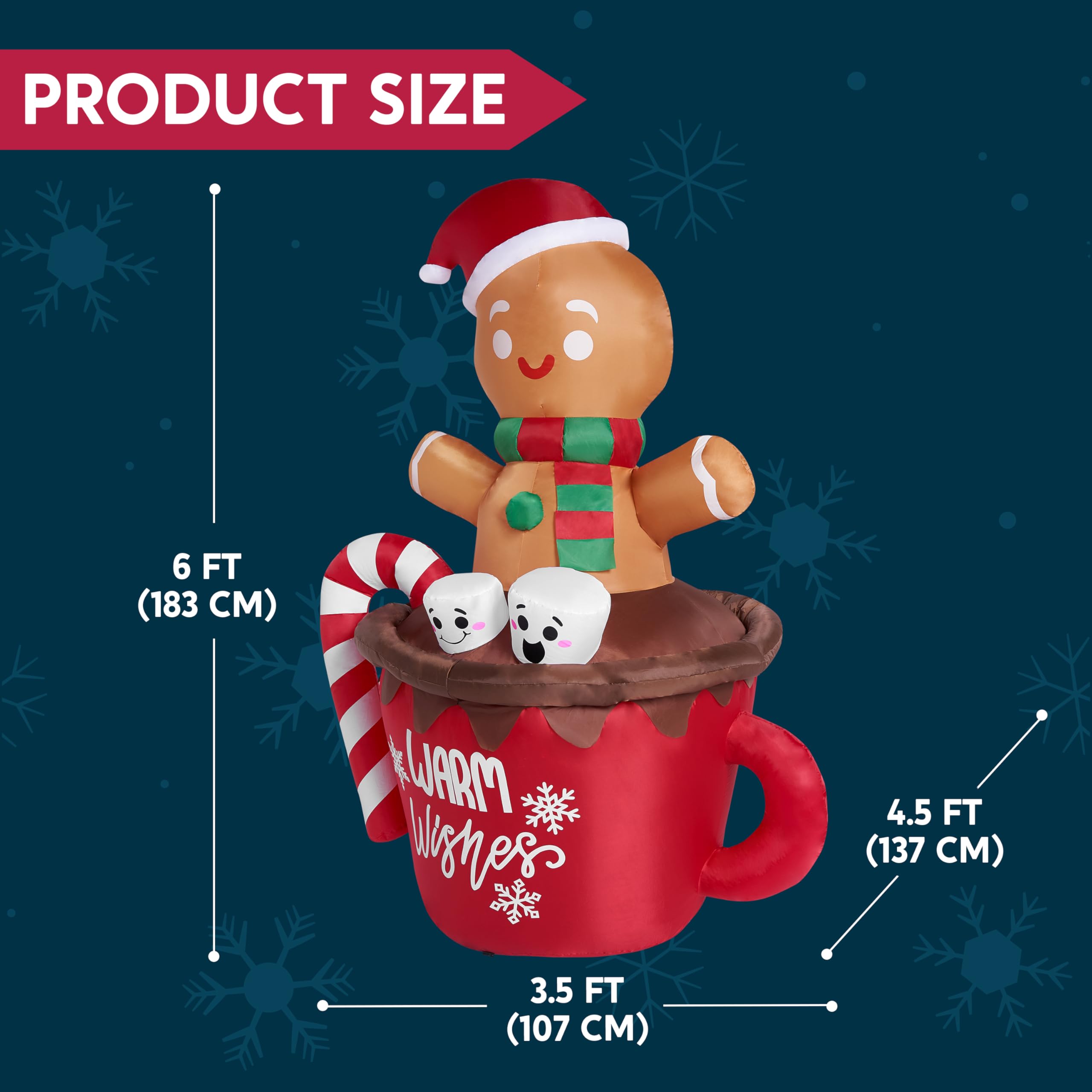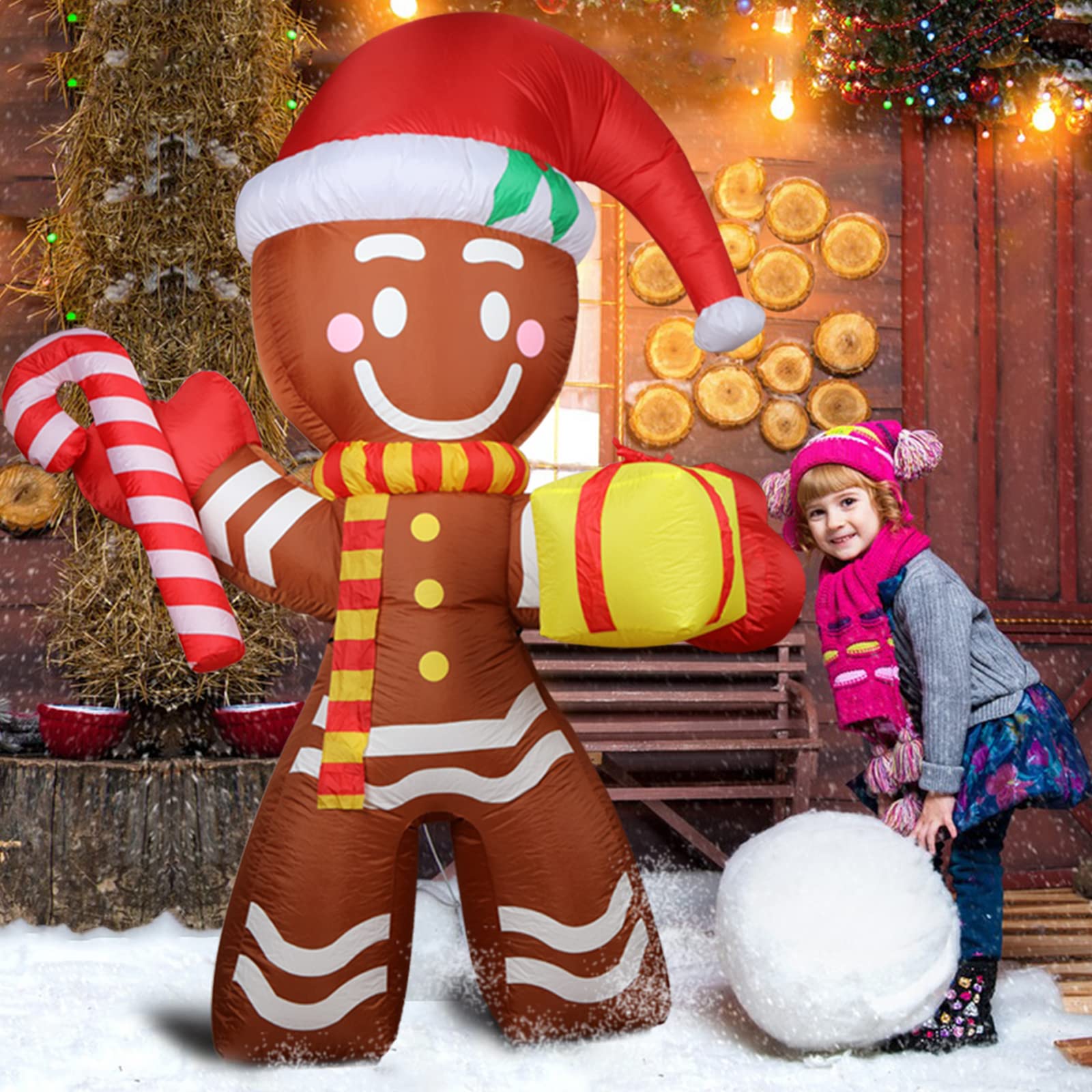 Déco Jardin Noël LED Modèle Gonflable De Noël Modèle 2,4 M Bonhomme En Pain D'épices LED Décoration Extérieure - Maison Animation Noël Extérieure Protection IP44 contre les éclaboussures. Père Noël gonflable avec LED Décoration de Noël IP44 3 m Les LED blanches intégrées illuminent le visage du bonhomme et créent une décoration lumineuse de Noël idéale la nuit. La couleur pain d’épices et les détails festifs en font une figurine de Noël extérieure géante parfaite pour photos, réseaux sociaux et ambiance magique Parfait pour jardin, et visible à plus de 50 mètres, il crée une ambiance magique et spectaculaire dans n’importe quel espace extérieur., 2., Installation Simple & Stabilité Élevée – Décoration Gonflable Extérieure. Idéal pour fêtes de Noël, animations nocturnes, décorations lumineuses extérieures, centres commerciaux et grandes propriétés. Bonhomme en pain d'épice gonflable avec lampe LED- Décoration de Noël - Décoration de Se range facilement et peut être réutilisé chaque année comme décoration gonflable extérieure., 5., IP44 Étanche – Décoration Noël Jardin / Façade / Commerce. Assurez-vous qu'il est suffisamment ventilé. 1️⃣ 3,66 m Géant – Bonhomme en Pain d’Épices XXL pour Décoration Noël Extérieure. Aussi haut qu’un balcon de 2ᵉ étage, un petit arbre de jardin, ou deux adultes superposés, il devient immédiatement un point d’attraction monumental. Avec ses 3,66 mètres de hauteur, ce bonhomme en pain d’épices figure parmi les plus grandes décorations de Noël gonflables. La couleur pain d’épices et les détails festifs en font une figurine de Noël extérieure géante parfaite pour photos, réseaux sociaux et ambiance magique., 4., Matériau Haute Résistance – Réutilisable Chaque Noël. Se gonfle automatiquement en 1 minute : il suffit de le brancher. Insérez correctement le produit et fixez-le pour éviter qu'il ne devienne une balle en cas de vent fort.
