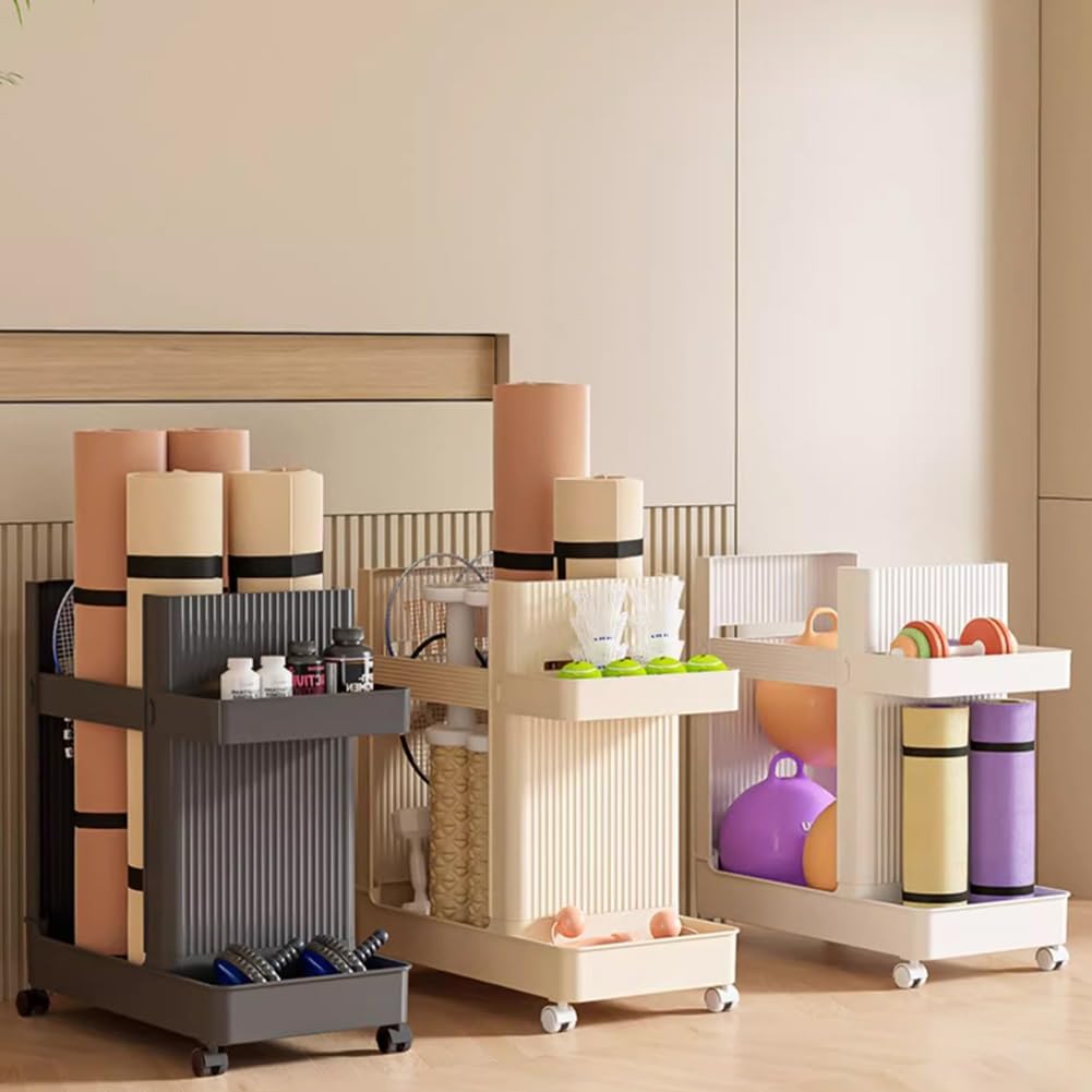 Trouvez de l'équipement de yoga et de Pilates : tapis, blocs, sangles, rouleaux en mousse, appareils Reformer pour bien s'entraîner Trois niveaux d'espace ouvert : l'étagère offre beaucoup d'espace de rangement sur trois niveaux. Etagere Tapis De Yoga Support De Rangement Pour Tapis De Yoga, Rangement Chariot Pour Salle De Sport Panier à Roulettes Étagère Utilitaire, Equipement D'entraînement Support Pour Rouleau De Mousse/Blocs De Yoga(Beige Tapis Les crochets permettent de ranger facilement des serviettes, des bandes d'exercice et des bouteilles d'eau, de sorte que les objets les plus importants sont toujours à portée de main. CONSTRUCTION EN ACIER AU CARBON : fabriqué en acier au carbone, le rack est robuste et peut supporter jusqu'à 150 livres. Organisé : le support est conçu pour améliorer l'esthétique de votre zone d'entraînement et vous aider à garder vos équipements de fitness bien rangés. SULQING Support ural de Rangeent pour Tapis de Yoga, Support ural... Tapis de Yoga - TRAHOO - Mixte - Purple Haze - 6 mm - 173 cm Ainsi, vous pouvez facilement transporter des rouleaux en mousse et des équipements d'entraînement. Son design garantit accès facile aux petits ballons de gymnastique, blocs de yoga, haltères, kettlebells et plus encore. MOBILITÉ À 360 ° : l'étagère est équipée de roues pivotantes à 360° et est facile à déplacer.