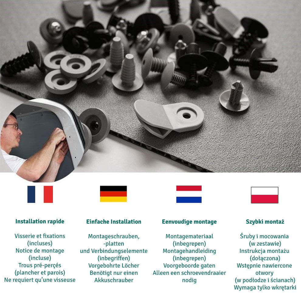 Isolation de véhicule, 8 pièces. Pour pare-brise et vitres latérales., Matériau 7 couches. Tapis thermique Deiwo pour camionnettes et autobus. Isolation de véhicule, 8 pièces. Pour pare-brise et vitres latérales. Matériau 7 couches. Réfléchit les rayons du soleil Le kit contient tous les matériaux nécessaires pour être prêt pour les voyages par temps froid et chaud. Pour se sentir bien dans différentes conditions climatiques, deiwo propose des tapis thermiques pour une température intérieure agréable., Voyager devient amusant. La deuxième couche de mousse de polyéthylène de 2 mm d'épaisseur et un revêtement anthracite, forme l'avant-dernière couche du tapis thermique. Ce kit complet DEIWO, c'est la solution tout-en-un pour isoler votre Renault Kangoo (modèles 2008-2013) du froid et de la chaleur ! Le kit comprend 8 protections thermiques qui couvrent le pare-brise et toutes les vitres latérales Tous les tapis de protection thermique passent par un bilan de qualité de 20 points et sont fabriqués en Europe. La mousse de polyéthylène soutient également cet effet. Avec le kit complet de Deiwo, vous serez à l'avenir équipé pour toutes les conditions météorologiques. La protection complète pour le mini camper. À faire soi-même ? Le cadeau idéal pour les individualistes. Ainsi, les tapis thermiques peuvent être fixés à l'intérieur de l'autobus sans colle ni vissage. Les tapis de protection sont spécifiques au modèle et fabriqués à partir de matériaux durables. Magníficos Aislantes térmicos para Renault Kangoo (Mod 1997-2008 Composition et finition : La base du tapis thermique forme une couche de PVC, ce qui réduit la formation de condensation sur les vitres. Les tapis thermiques de Deiwo sont spécialement conçus pour une utilisation dans les autobus de camping tels que Fiat Ducato, Mercedes Sprinter, VW T5/T6 et bien plus encore. Les tapis thermiques deiwo sont produits sur mesure pour le modèle, mais tous les souhaits ne peuvent pas toujours être satisfaits. Le kit complet pour mini camions et camionnettes. Tapis Pare-brise Vitres 7 Couches Deiwo® Kit Complet De Protections Thermiques 8 Pièces 008-2013 Kangoo 2 Les transporteurs se concentrent de plus en plus sur les campeurs jeunes et plus âgés. Ainsi, chez Deiwo nous garantissons un haut standard de qualité, afin de garantir un plaisir particulièrement long du produit. Généralement, le froid sur les fenêtres pénètre à l'intérieur.