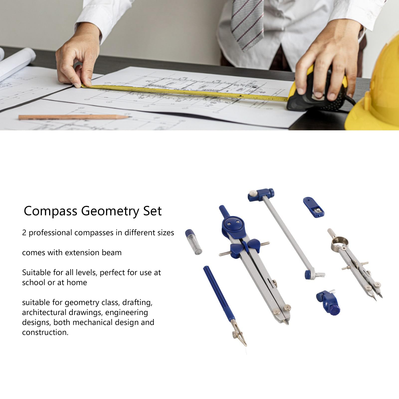 【Largement utilisé】 Cet ensemble de jauges circulaires convient aux cours de géométrie, au dessin, au dessin architectural, à la conception technique, à la conception mécanique et à la construction. 【Matériau de qualité】 Cet ensemble de géométrie mathématique est fabriqué en alliage de zinc, solide et durable. L'ensemble de compas est en métal, qui est fort et durable, pas facile à plier et à déformer. La compas mathématique est entièrement équipée pour un dessin facile et un ensemble de pages est facile à util r Compas De Mesure Kit De Géométrie Mathématiques Boussole En Métal Avec... C'est une aide pour de nombreux outils de mesure que les architectes, les ingénieurs, les dessinateurs, les ouvriers du bâtiment, les couvreurs, les enseignants et les étudiants doivent utiliser dans leur processus de dessin. Ensemble De Géométrie Avec Cadenas, Boussole Mathématique Et De Boussole Mathematique Et De Precision Metal Bleu~p119005188 【Étui incassable】 Cet ensemble de jauges de cercle de dessin est emballé dans une boîte de rangement incassable, facile à transporter et à ranger. 【Service】Nous nous engageons à fournir à nos clients des produits de haute qualité et un service après-vente parfait. Kit Géométrie Ensemble De Géométrie Boussole Arc De Précision En Métal Géométrie Set Boîte Rangement Incassable Portable Parfait pour les étudiants, idéal pour l'école et la maison. 22 x 10 x 2 cm/8,7 x 3,9 x 0,8 pouces (mesure manuelle, une légère erreur peut exister) Liste des packages : 1 x stylo à bille 1 x faisceau d'extension 2 x Boussole 1 x porte-crayon 1 x Recharge 1 x petit taille-crayon 1 x petite boîte 1 x grande boîte 【Ensemble de géométrie de boussole】 Cet ensemble de géométrie de jauge de cercle comprend 2 tailles différentes de jauges de cercle professionnelles pour vos besoins d'apprentissage et de dessin en mathématiques.