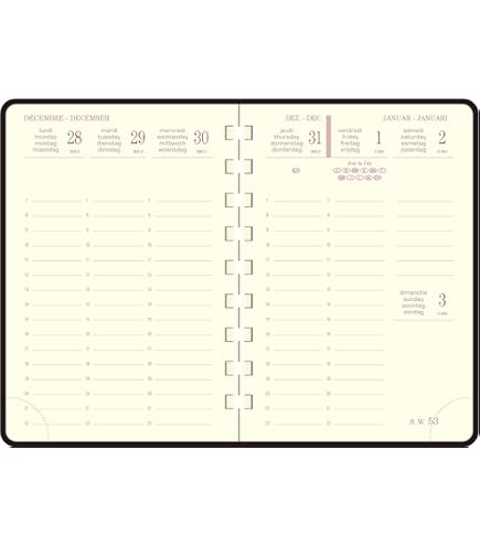 Confident de l'action présente, support des projets futurs et sauvegarde de la mémoire, les rapports entre l'homme et son agenda, l'Agenda Moderne le connait bien. L'Agenda Moderne propose des collections qui se distinguent par un subtil mélange d'originalité, d'élégance et d'inventivité. Recharge agenda modulable tranche dorée Recharge Organiseur 8x12,4cm Tranche Dorée Agenda Moderne Semainier De Poche 3338800600005 Cette recharge est équipée d'un planning accordéon Calendrier Décembre 2026 et Janvier 2027 à imprimer Recharge Ephemeride 2026 Agenda De Bureau All In 2 EasySlim 21 Kaa 15 X 21 Cm Mensuel Janvier 2026 à Janvier 2027 - 13 Mois - Noir Recharge Agenda Quo Vadis 2026 L'Agenda Moderne propose des collections qui se distinguent par un subtil mélange d'originalité, d'élégance et d'inventivité. Confident de l'action présente, support des projets futurs et sauvegarde de la mémoire, les rapports entre l'homme et son agenda, l'Agenda Moderne le connait bien. Agenda Moderne - 1 recharge d'agenda journalier - janvier...