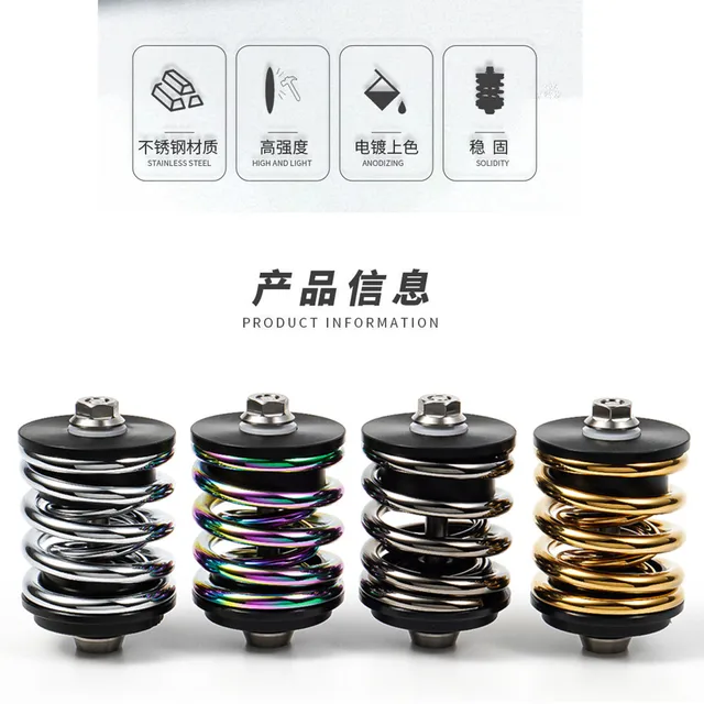 Vous pouvez avoir l'esprit tranquille en sachant que ce ressort amortisseur absorbe efficacement les chocs et les vibrations pendant votre trajet. Matériaux légers : fabriqué à partir d'acier de haute qualité et de plastiques techniques, notre amortisseur arrière de vélo pliable est à la fois résistant à l'usure et non corrosif Caractéristiques : * Fabriqué en acier de haute qualité, robuste et durable. Absorption efficace des chocs : le ressort d'amortisseur pliable pour vélo est conçu pour fournir une absorption efficace des chocs, vous permettant de contrôler facilement votre vélo sur différentes sections de route. Structure simple et sûre : avec une structure simple, le ressort sert de corps principal de l'amortisseur, tandis que l'axe est un arbre en acier à haute résistance qui ne se casse pas facilement. Cette caractéristique peut grandement améliorer votre expérience de cyclisme et vous garder en sécurité pendant les trajets. * Convient pour les vélos pliants Brom-Pton Caractéristiques : * Nom du produit : ressort amortisseur pliable pour vélo., *Matériau : acier. Arc-en-ciel nouveau - Suspension de vélo pliante pour personnes âgées 【Design à ressort double couche】Le design à ressort double couche offre des capacités de charge fiables, ce qui le rend adapté à diverses conditions de route. Absorption efficace des chocs, facile à contrôler différentes sections de route. Contenu de l'emballage : 1 ressort amortisseur. Amortisseur arrière de vélo. 125 mm/150 mm/165 mm/190 mm. Fonction : amortissement réglable, dureté du ressort réglable. Longueur de la bague : 24 x 24 mm, diamètre intérieur de l'œil : 8 x 8 mm. Caractéristiques Accessoire Vélo Pliant Suspension Amortisseur Arrière De Vélo Pliant En Alliage De Titane, Ressort Pour Pièces De Vélo Brompton Amortisseur Vélo Brompton *Dimensions : environ 67 x 39,8 x 39,8 mm., Couleur : voir photo., *Poids : environ 162 g.