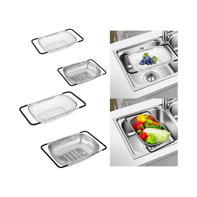 C : 3 x égouttoir de cuisine. *Fonctionnalité polyvalente : pas seulement pour les éponges, ce panier suspendu peut contenir divers éléments essentiels de cuisine tels que des brosses à vaisselle, des bouteilles de savon, et plus encore, gardant tout ce dont vous avez besoin à portée de main. Égouttoir de cuisine, étagère de rangement, 2 niveaux, extensible, pour ustensiles de cuisine, 100 × 28 × 84 cm, noir. 45,99 Cet égouttoir à vaisselle pour comptoir de cuisine se plie pour un format compact et pratique, s'agrandit pour atteindre une taille plus standard, ou s'adapte à toutes les tailles intermédiaires pour s'adapter parfaitement à votre plan de travail [Design peu encombrant] Maximisez l'espace vertical de votre cuisine avec cette étagère innovante qui maintient les outils de nettoyage organisés sans encombrer vos plans de travail. 2 Pièces Égouttoir À Légumes Panier Panier À Linge Évier Passoires Récipient Carré Panier À Installation facile : profitez d'une installation sans tracas avec un processus d'installation convivial qui ne nécessite aucun outil, vous permettant de le monter en toute sécurité sur votre évier ou votre mur en quelques minutes. Rangement multifonction : plus qu'un simple porte-éponge, ce panier suspendu peut accueillir divers éléments essentiels de cuisine tels que les brosses à vaisselle et les bouteilles de savon, gardant tout facilement à portée de main. Porte éponge Gain De Place Égouttoir Pour Évier De Cuisine - Support Enroulable - Étagère De Lave-Vaisselle Enroulable égouttoir Vertical évier Taille : comme sur l'image., Couleur : blanc. Caractéristiques : * Design peu encombrant : ce support de rangement pour robinet d'évier de cuisine utilise efficacement l'espace vertical, vous permettant de garder vos outils de nettoyage organisés sans prendre de place précieux sur le plan de travail. * Sécher et séparer : l'innovant garantit que les éponges et les chiffons humides sont séparés des articles secs, évitent l'humidité indésirable et favorisent l'hygiène dans votre cuisine.