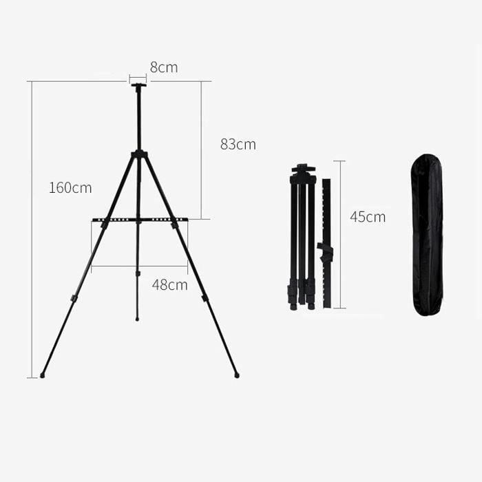 Chevalet métallique peinture - Chevalet Peinture Montage Rapide sans Outils: Grâce à ses joints à ressort et cordons élastiques, ce chevalet s’assemble et se démonte en quelques secondes, sans outils. Chevalets Pour Dessiner Chevalet Réglable Chevalet Pliable 160 Cm Pour Tableau Mariage Ou Chevalet Intérieur Extérieur Chevalet Pliable et Portable:Notre chevalet est léger et se plie intégralement pour une portabilité optimale. Structure Stable et Durable: Fabriqué en métal renforcé, ce chevalet peinture allie légèreté et robustesse. Ses pieds antidérapants assurent une stabilité même sur surfaces irrégulières, pour un usage intérieur et extérieur fiable. Chevalet Pliant Trépied Portable Réglable en étal Léger,168c Chevalet... Chevalet d'artiste artistique pour peinture Parfait pour supports de toile, panneaux d'art et signalétique, il assure une présentation professionnelle à tout niveau. Une solution pratique pour le rangement et les déplacements fréquents. Hauteur Réglable Polyvalente: Ce chevalet peinture offre une hauteur ajustable (38 à 169 cm), s'adaptant autant aux enfants qu'aux adultes.