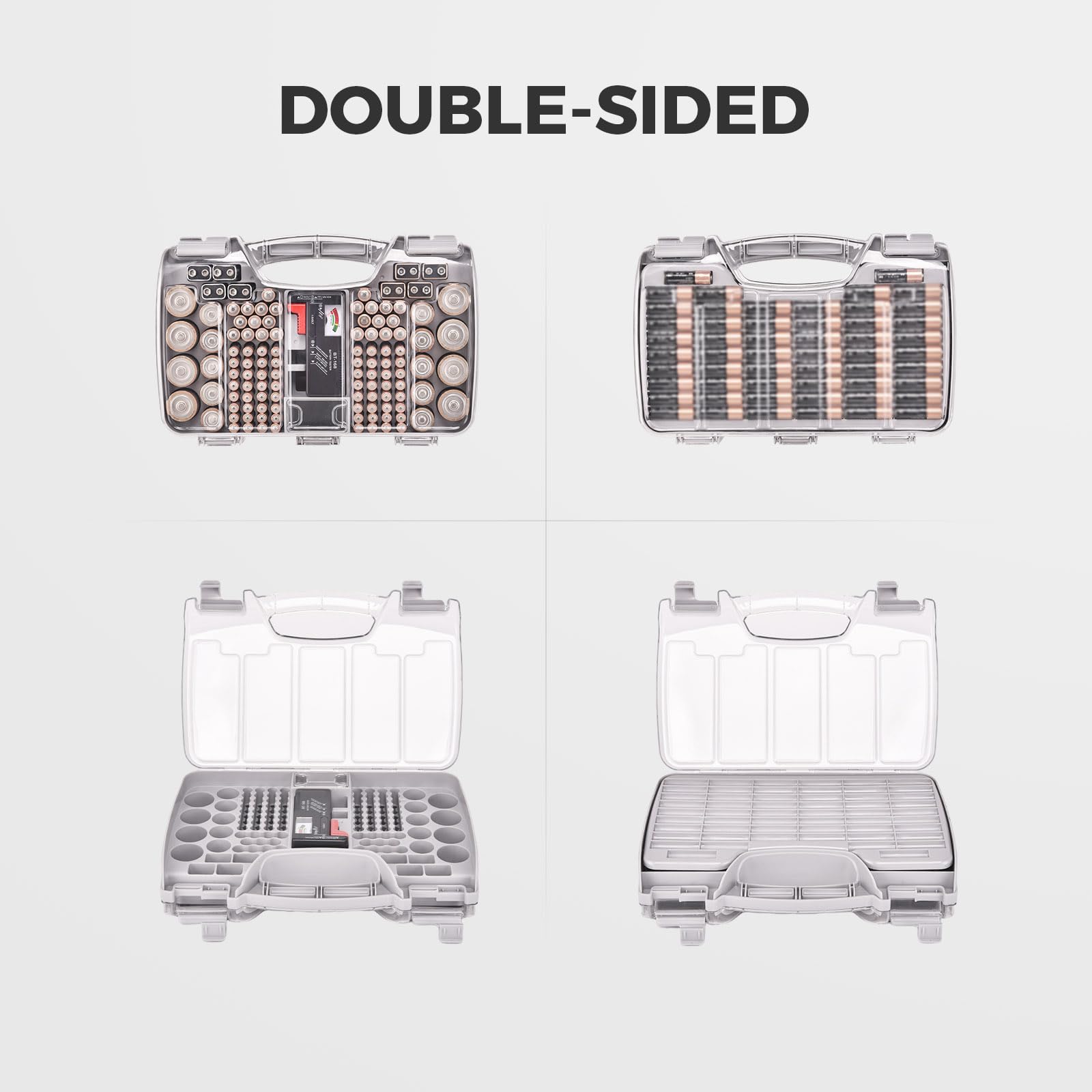 Boîte rangement double face | Mon magasin Brico E.Leclerc Organizador De Baterias De Almacenamiento Myutrensty Boîte De Rangement Avec Testeur Pour 180 Piles AA, AAA, C, D, 9 V, Piles Bouton, Rangement Double Face Avec Poignée De Transport Et Couvercle Transparent Pratique et pratique : vous pouvez ranger toutes sortes de piles dispersées à la maison dans cette boîte à piles, garder les piles bien rangées et faciles à trouver, rapidement les piles que vous voulez La division claire en compartiments permet un tri systématique, tandis que le couvercle transparent permet une vue rapide du stock de la batterie à tout moment. Idéal pour la maison, l'atelier ou l'équipement de camping Sacoche de rangement pour 96 piles avec testeur de piles | Chargeurs / Testeurs Couvercle transparent pour une vue d'ensemble rapide : le couvercle transparent affiche les types de piles sans avoir à ouvrir. Testeur Piles, Testeur De Piles, Testeur Pile, Testeurs De Piles Contrôleur, Testeur De Piles Aa... Testeur de batterie inclus : le testeur de batterie détecte avec précision la charge résiduelle de la batterie et distingue également rapidement les anciennes et les nouvelles piles Grande capacité et tri clair : boîte à piles utilisable des deux côtés pour 180 piles (78 AA, 64 AAA, 8 x 9 V, 10 C, 8 D, 12 piles plates), compartiments transparents pour chaque taille de batterie.