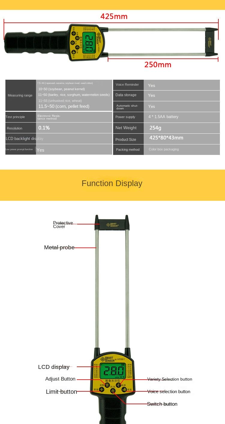 Jauge à outils pour camion, mesure précise de la p... – Grandado [Système de pesage intelligent]: dispose d'une pesée automatique, d'une compensation de température et d'un étalonnage multi-points pour divers types de grains. Compteur Humidite Cereales Precis HUMIDIMÈTRE POUR BOIS Et Murs Affichage Numérique Mesure Précise EUR 43 Testeur Humidité Grains LCD [Dual Power Supply]: Peut être alimenté par AC et DC, avec une conception de la SPE, la fonction de hibernation intelligente pour la fonction de la fonction de hivernation de hibernation. [Conception non glissée]: équipé d'un coussin antidérapant inférieur pour un placement stable sur tout, garantissant la prévention des dommages. [Application polyvalente]: Idéal pour l'acquisition des céréales et l'inspection du stockage, ainsi que pour des objectifs d'enseignement professionnels dans les établissements d'enseignement. Compact et facile à utiliser: ce testeur d'humidité des grains est portable, compact et fournit des lectures d'humidité et de température en temps réel. Utilise... Medidor de pH y humedad para plantas, jardines, granjas y céspedes [Performances de mesure précises]: Ce testeur d'humidité des grains fournit des résultats rapides et précis avec un écran LCD facile à lire. [Alimentation double électricité]: Peut être alimenté par AC et DC, avec une fonction d'hibernation intelligente pour l'efficacité énergétique. Équipé d'un coussin antidérapant inférieur pour un placement stable sur n'importe quel, garantissant la prévention des dommages.