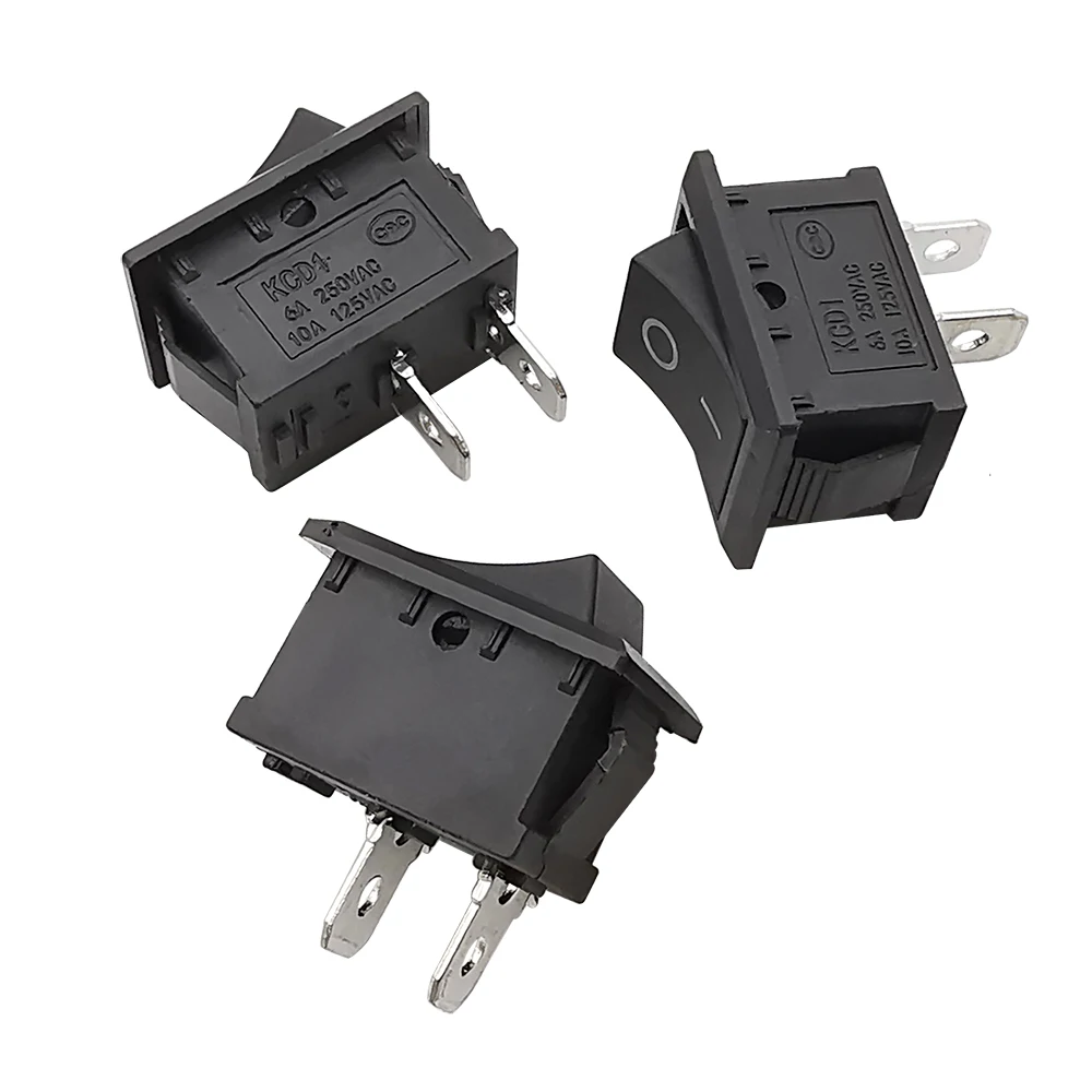 EN STOCK : 10 pièces Mini interrupteur à bascule T85 KCD1-101 Interrupteur à bascule SPST 2 broches avec câblage Noir, PB-005593ZY pas cher Le paquet inclus: 10 x Interrupteur à bascule Couleur: Noir Interrupteur Nylon PA66 Durable Interrupteur A Bascule Lot De 10 Interrupteurs à Bascule Mini T85 KCD1-101 - SPST 2 Broches Noir Pour Électronique Interrupteur Bascule Spst Mini Interrupteur 12v Ces interrupteurs, de type SPST avec 2 broches, sont parfaits pour une variété d'applications, allant de l'équipement industriel aux appareils ménagers. Longévité et Fiabilité Exceptionnelles: Capable de résister à plus de 80,000 activations mécaniques et 10,000 cycles électriques, ces interrupteurs electronique garantissent une performance durable, réduisant la nécessité de remplacements fréquents. Matériaux de Haute Qualité pour Durabilité Accrue: Construit avec un boîtier robuste en nylon PA66, ces interrupteurs sont conçus pour résister à des conditions extrêmes incluant haute température, corrosion, acides, et alcalis. Interrupteur à bascule 250V 6A 125V 10A AC CQC KCD1-101 noir... HUAREW Lot de 10 mini interrupteurs à bascule T85 KCD1-101 Le système d'installation à encliquetage, complété par un trou de serrure, facilite la mise en place et empêche toute rotation indésirable, simplifiant ainsi l'intégration dans vos projets. Conception SPST Optimisée: Mini interrupteur modèle KCD1-101 offrant un design SPST (Single Pole Single Throw) avec 2 broches pour une commutation efficace et fiable dans diverses applications électriques, idéal pour un contrôle précis. Fabriqués avec un boîtier en nylon PA66, ces interrupteurs résistent efficacement à la chaleur et aux substances chimiques, tandis que leurs connecteurs en laiton plaqué argent assurent une conductivité optimale.